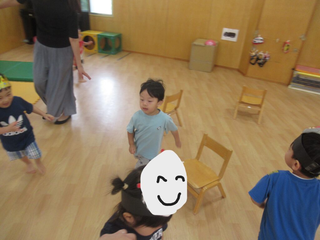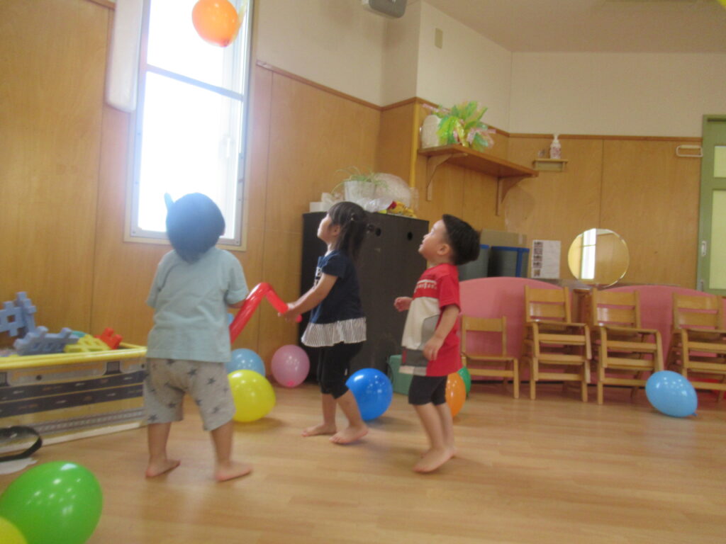 今日は椅子取りゲームと風船遊びをしました。