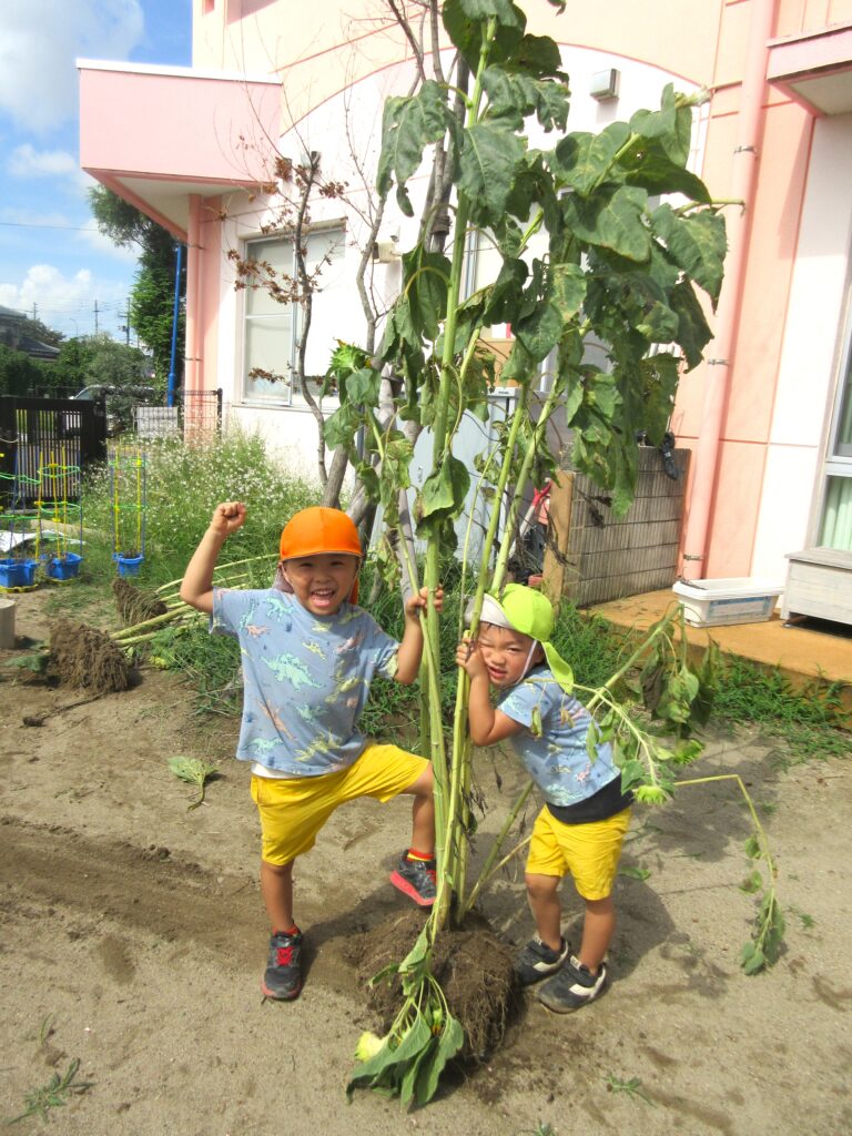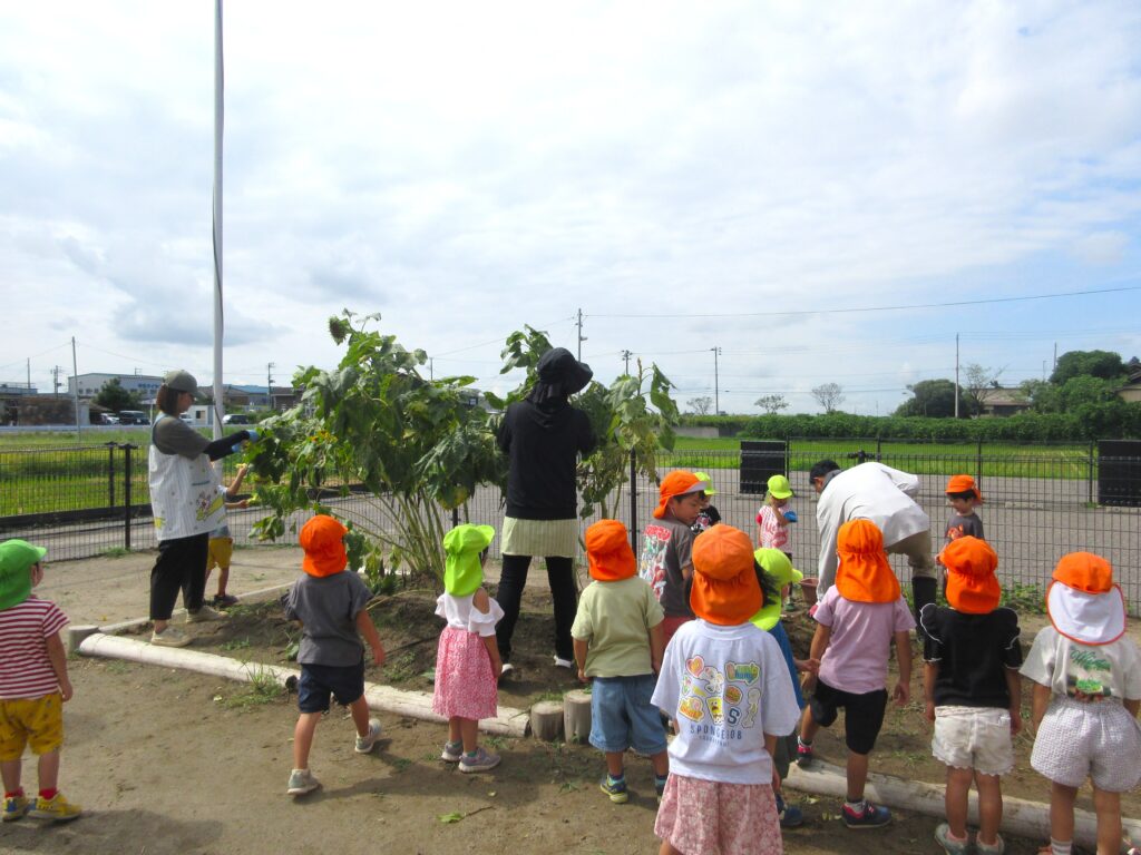 ひまわりの高さは子ども達の2倍・3倍もありました!!