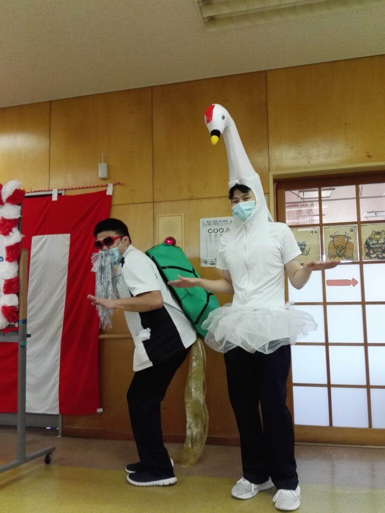 職員が亀と鶴になり登場!!