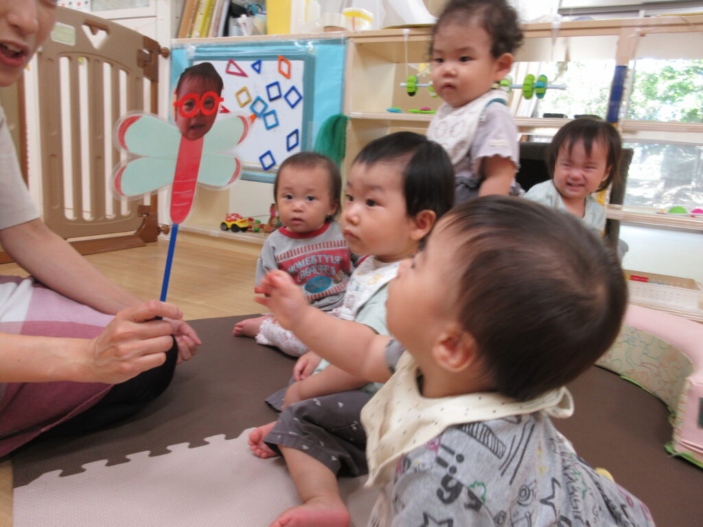 しずく組のお誕生会にも、とんぼが遊びに来てくれました。