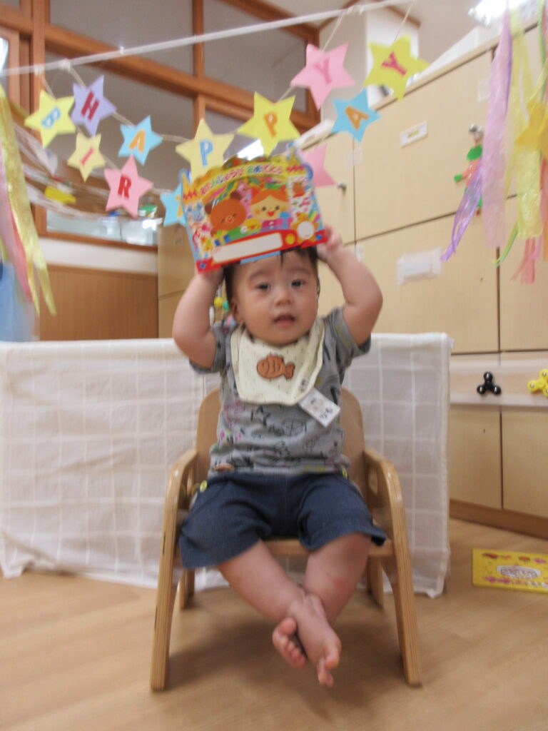 今月でしずく組の子どもたち全員が1歳のお誕生会を終えました。