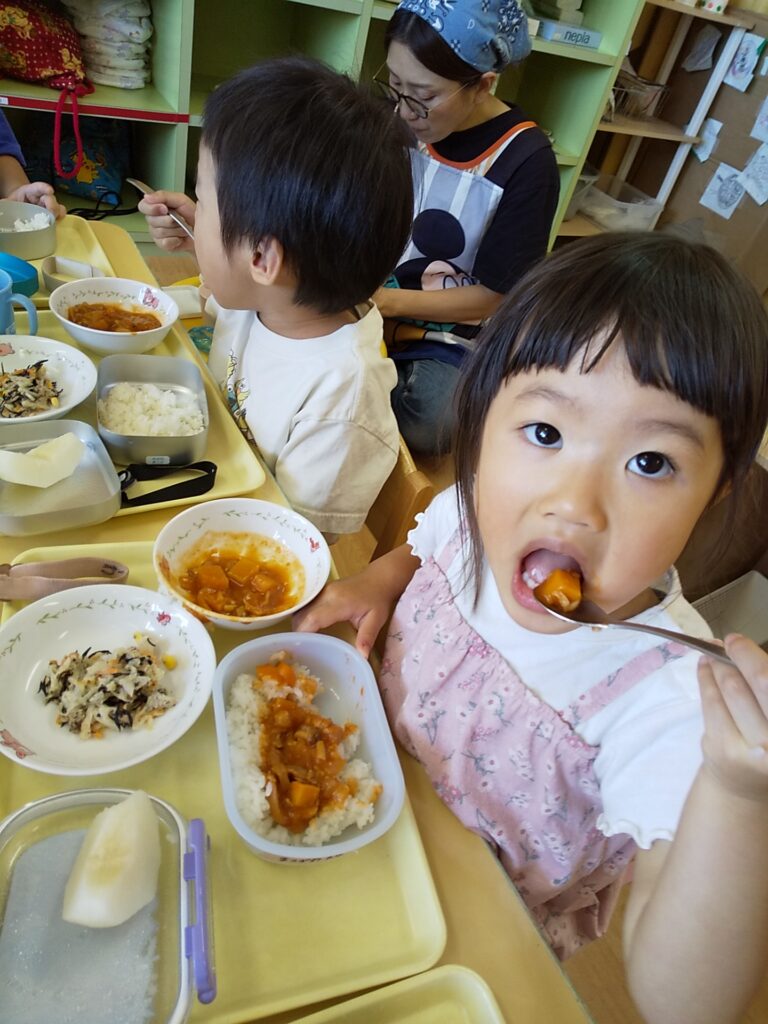 これからも食についてのお話の中で様々な食材を知ったり、食べる良さを感じたりし、沢山食べて元気で丈夫な体を築き、元気いっぱいに過ごしていきたいと思います!