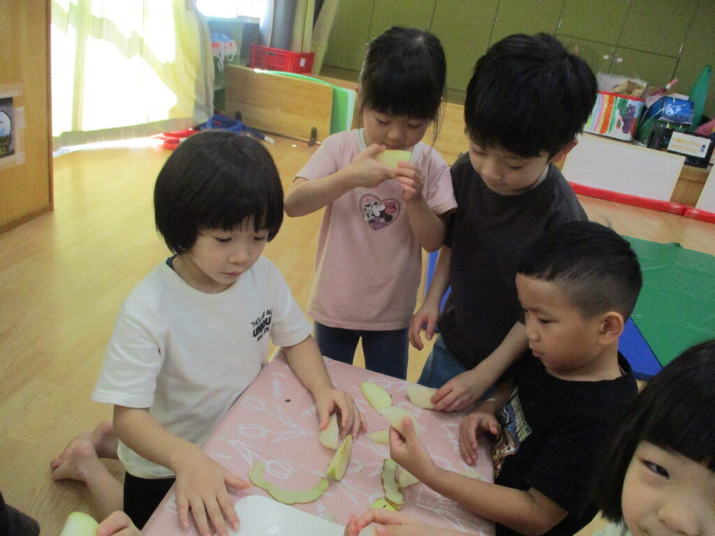 梨とりんごの違いを知ったからこそ、「今日は梨だ!」と迷うことなく教えてくれた子どもたちでした。