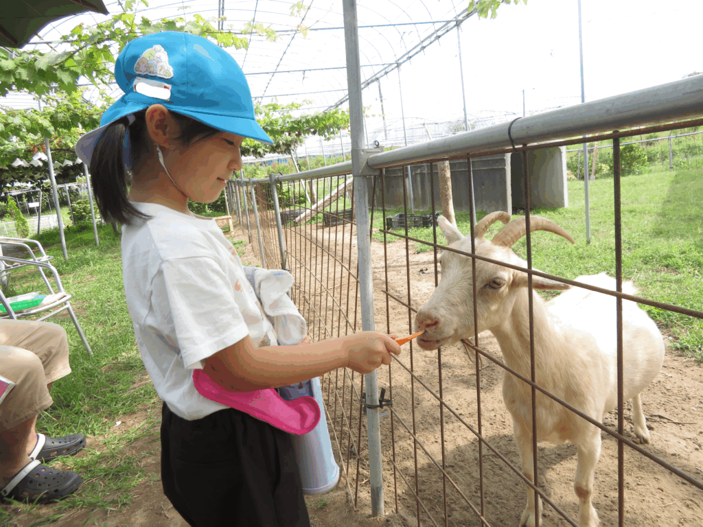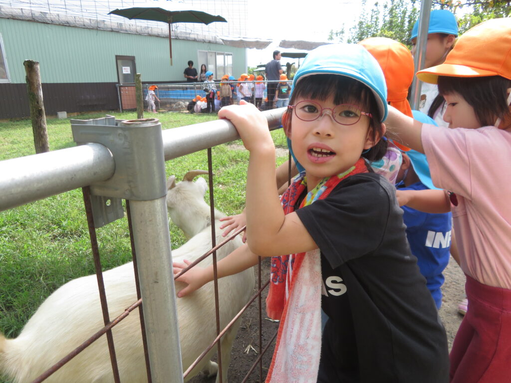 ヤギさんと触れ合い、身体に触れて温かさや角の固さを感じたり、手からエサを食べている姿を優しいまなざしで見つめたりと、生き物との触れ合いで癒されていました😊