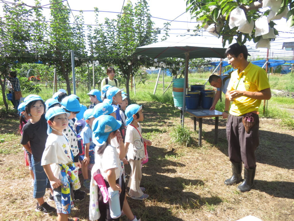 「みんなに収穫してもらうのは、”あきづき”という名前のなしで、秋は月がきれいに見える季節でその時期に収穫できるからこのような名前なんだよ」と名前の由来も教えてもらいました!