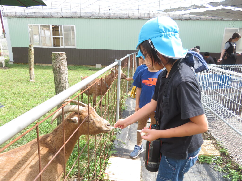 お弁当の後はヤギさんにエサやり体験をしました。