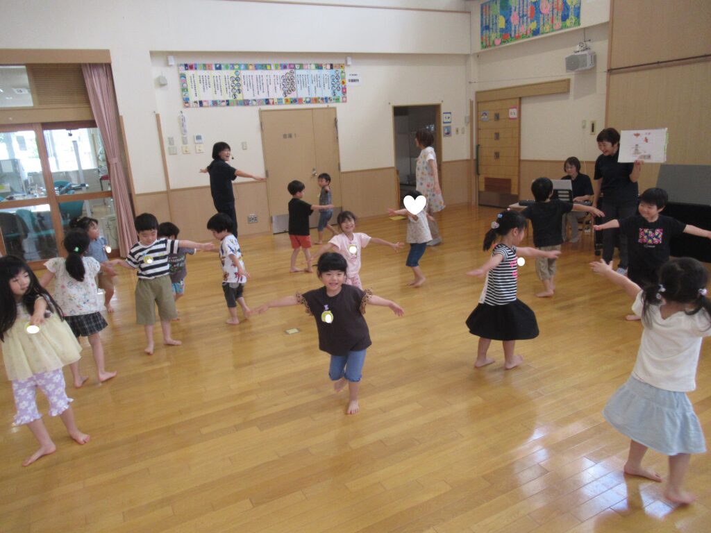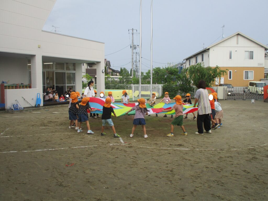 9月2日には「おもちゃ箱」というグループの方々が来園し、歌やペープサート、リズム遊びをしてくれました。みんな目を輝かせながら楽しんでいました。
