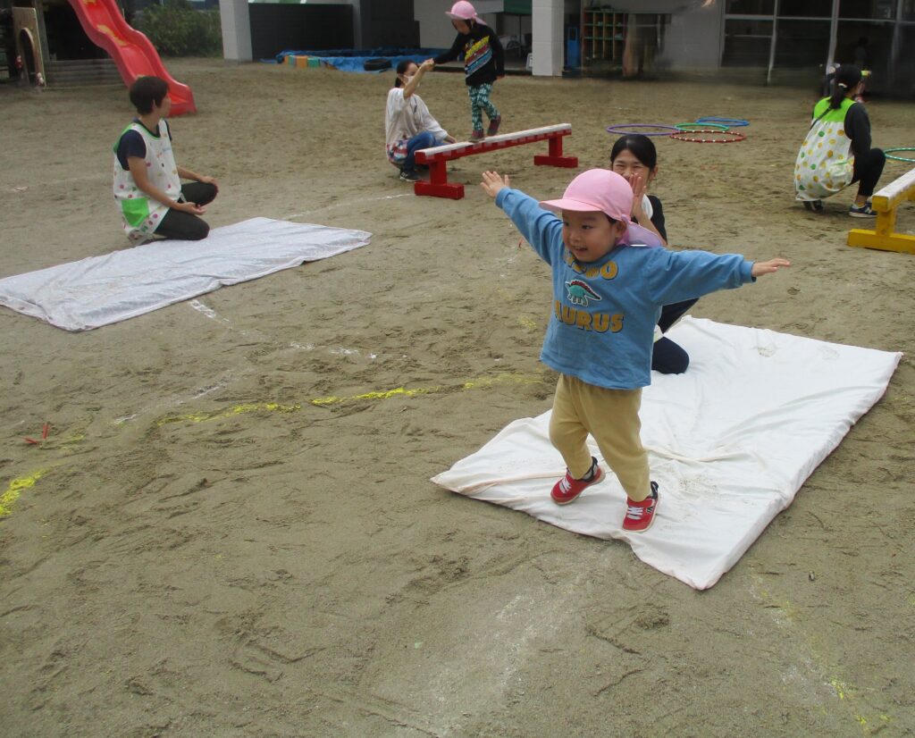 小さいクラスは担任や友達との関わりを楽しみながら体を動かしたり、大きいクラスでは頑張る気持ちやクラスごとに目標を持ちながら取り組んでいました。どのクラスも楽しい雰囲気を大切に、体を動かしたりできた事を喜び合ったりと、また一つ成長した姿を見せてくれました。引き続き運動遊びを楽しみながら、散歩や外遊びを通してより一層深まる秋を感じていきたいと思います。