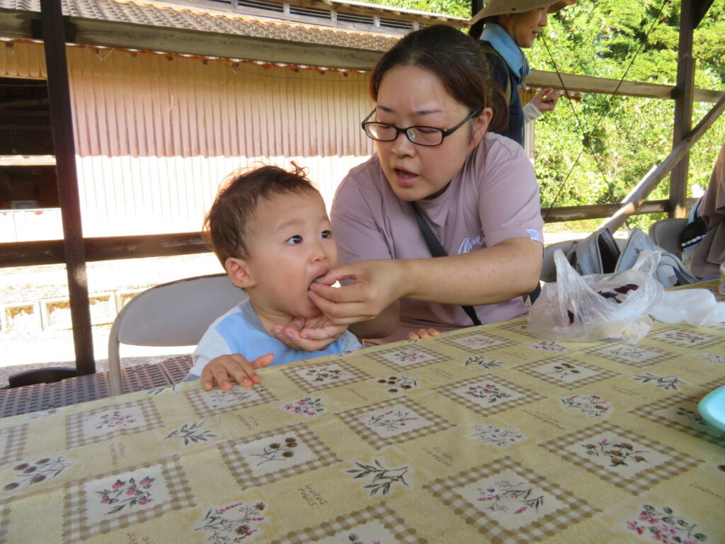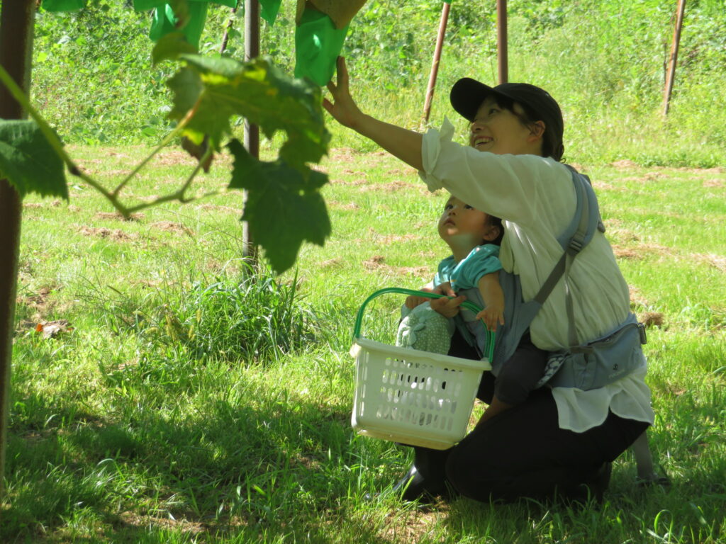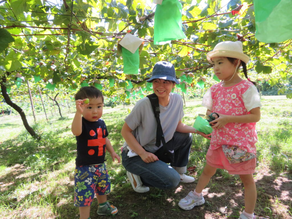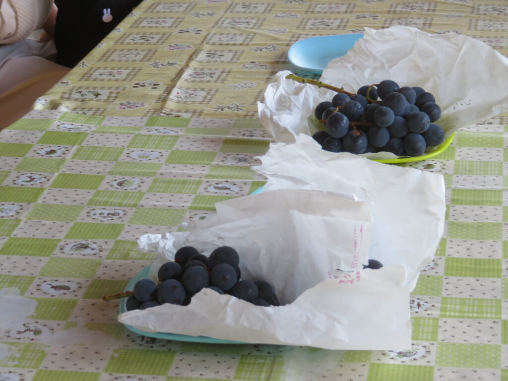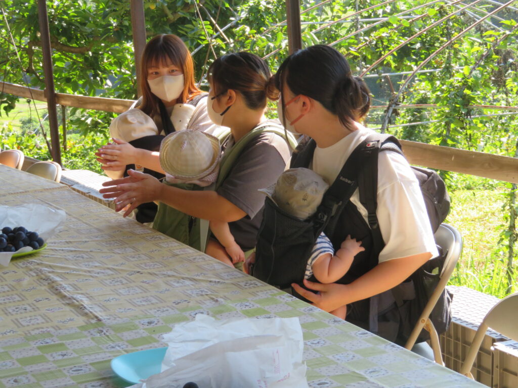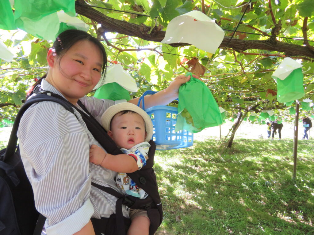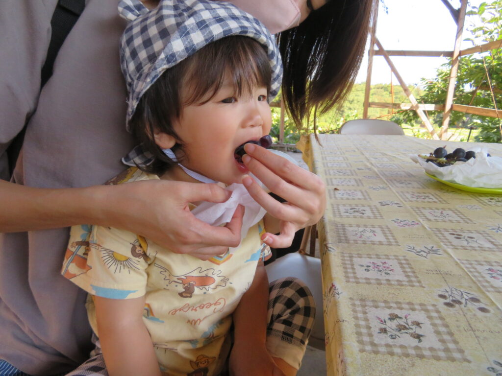 お子さんたちも大喜び!大きなぶどうを見つめたり、パクっと食べたりと可愛らしいお顔が見られました。
