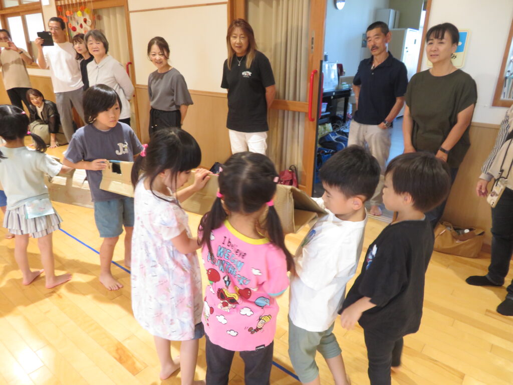 運動会の時よりもお客さんが近くで見ている事もあり、また少し緊張気味の子どもたちでしたが、上手に出来る姿を見てもらい、沢山の拍手をもらって嬉しそうでした😊