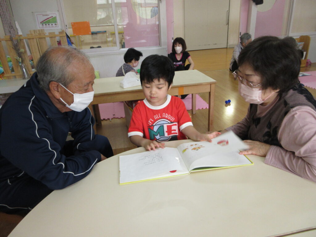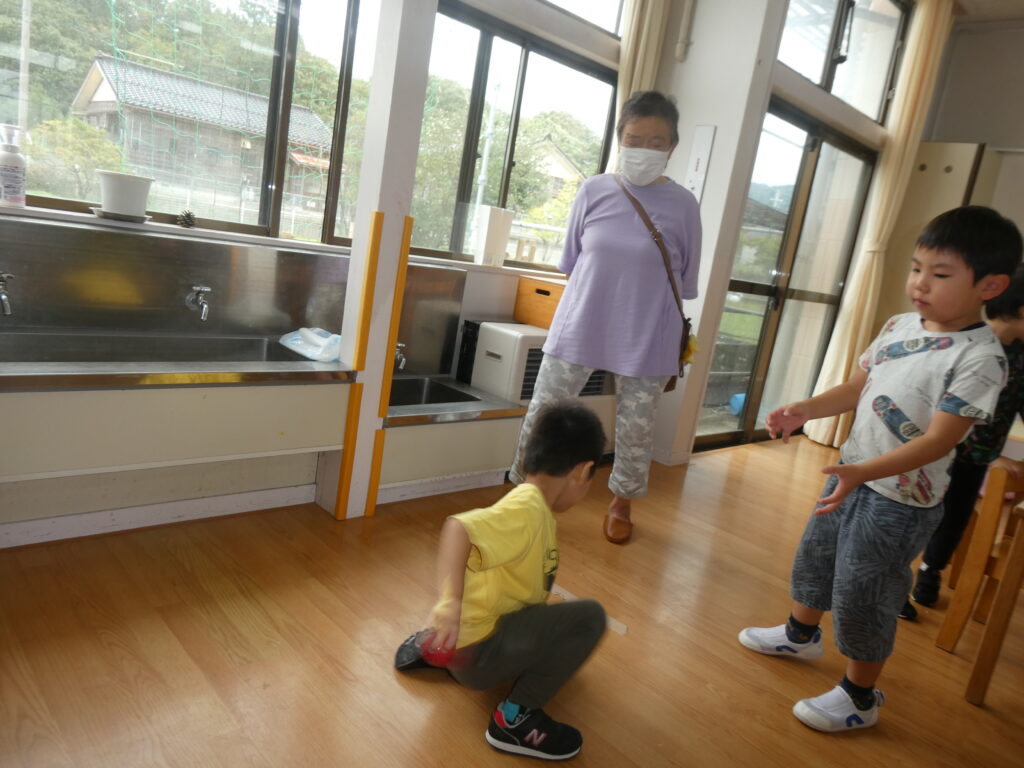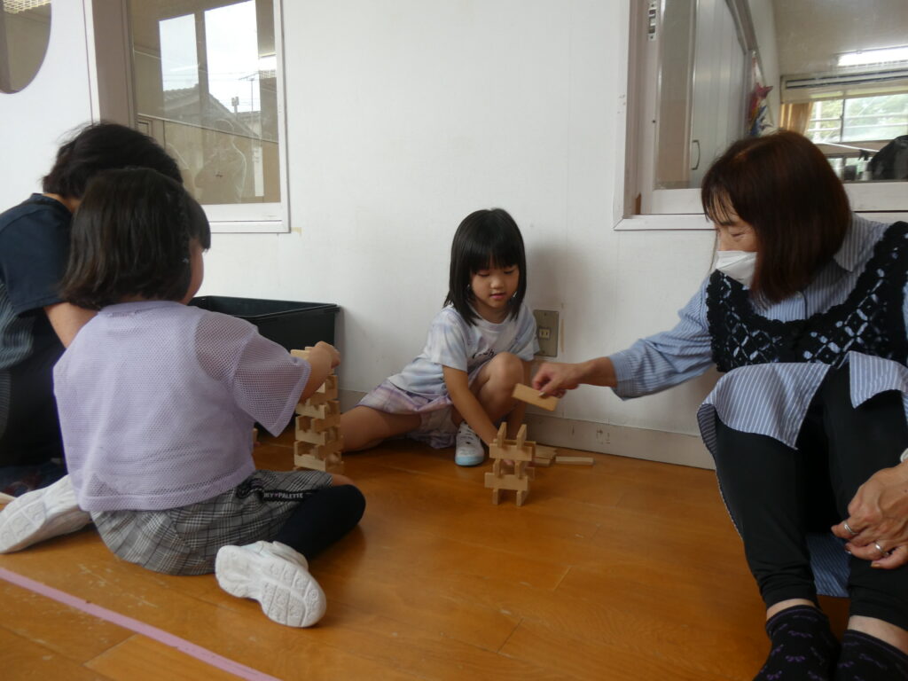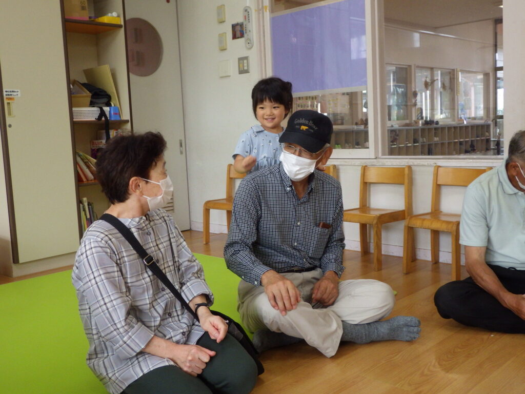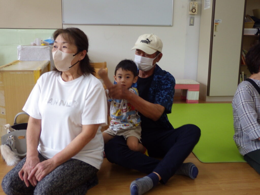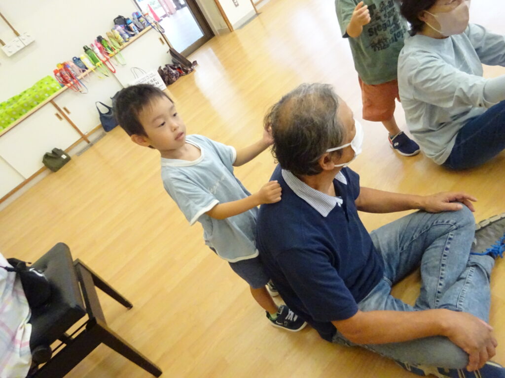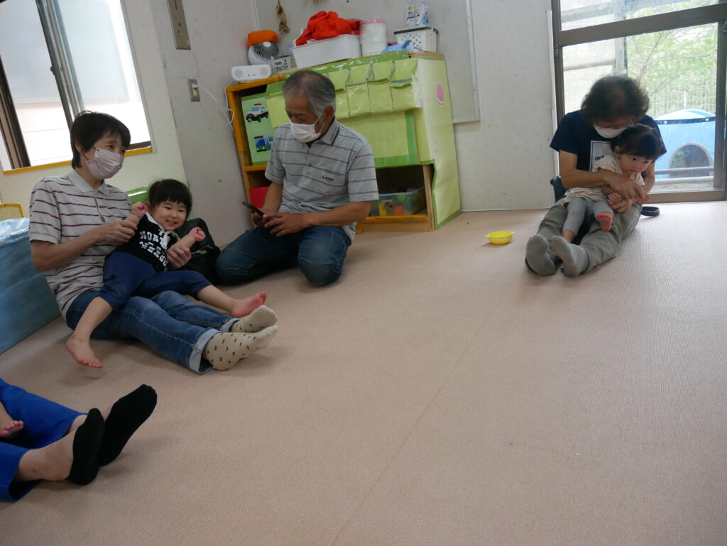 さくら組は「かたたたき」「一本橋こちょこちょ」をしました。そのあとは自分の好きな遊びにおじいちゃんおばあちゃんを誘って「みてみて」と自慢げな表情を見せていてかわいかったです。