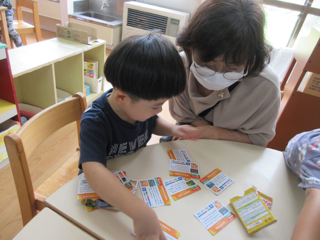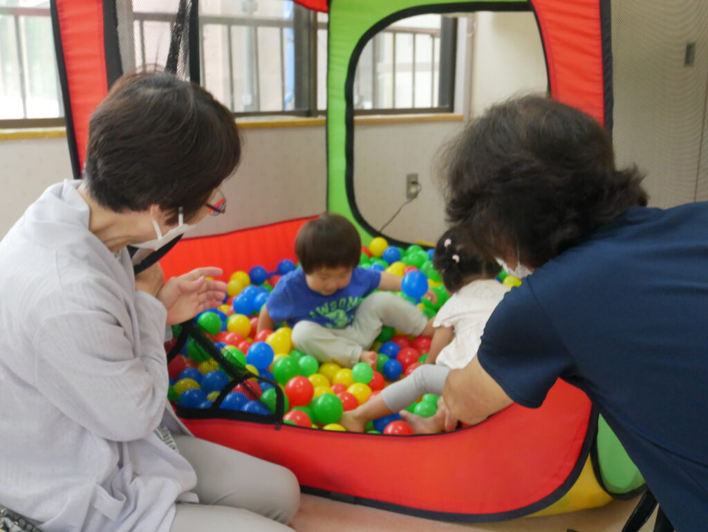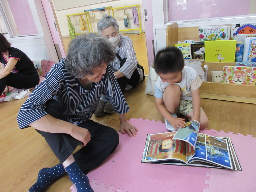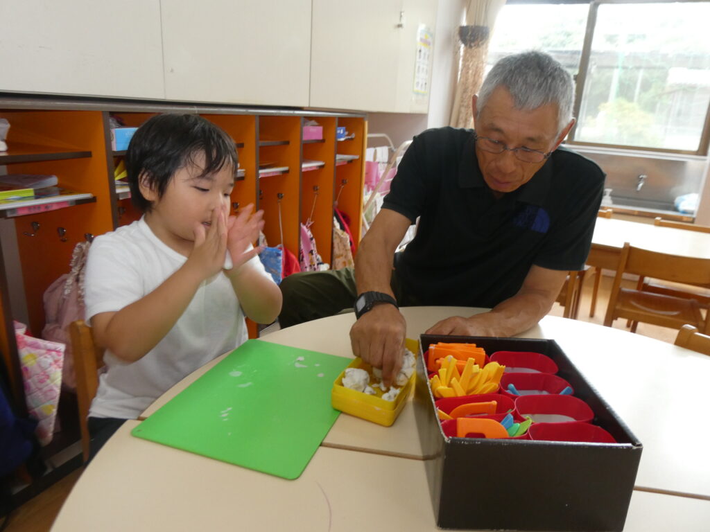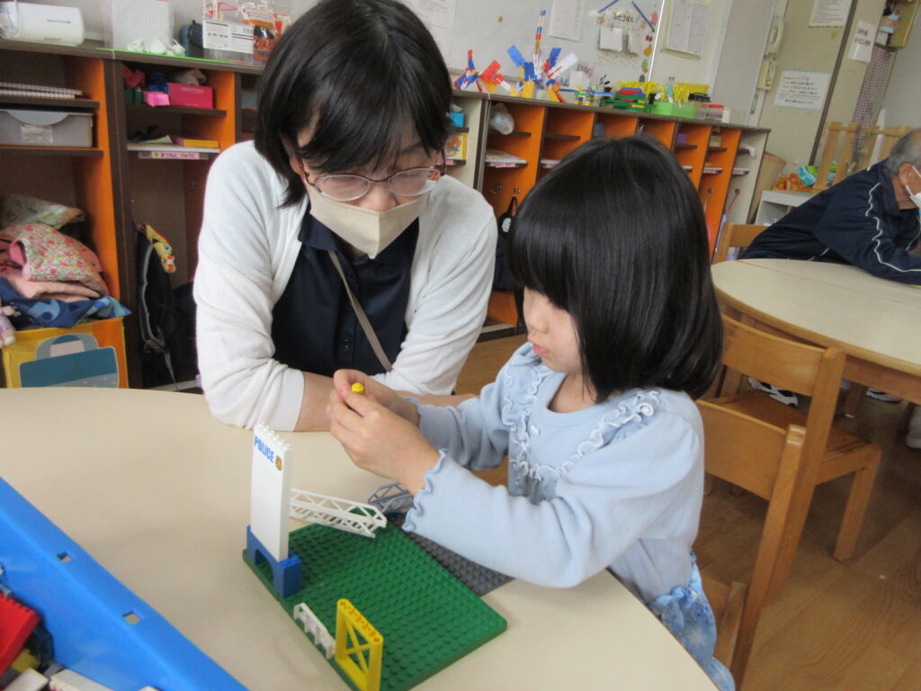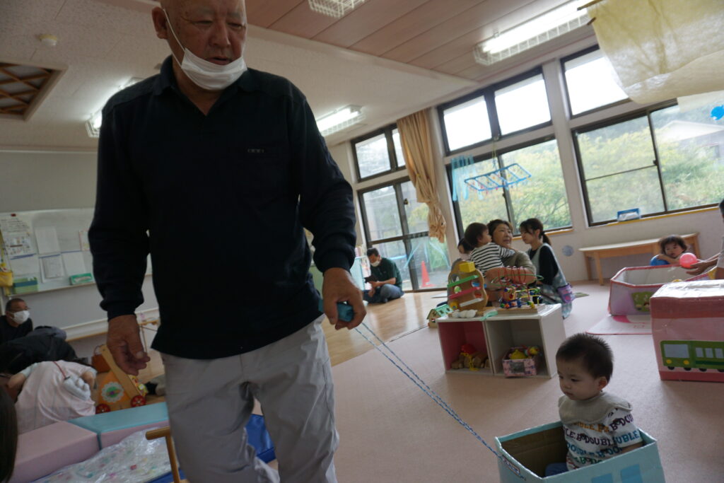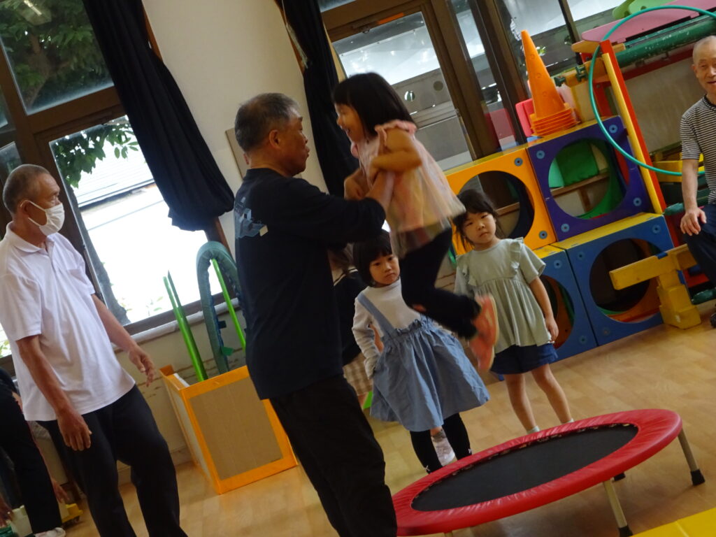 さくら組は「かたたたき」「一本橋こちょこちょ」をしました。そのあとは自分の好きな遊びにおじいちゃんおばあちゃんを誘って「みてみて」と自慢げな表情を見せていてかわいかったです。