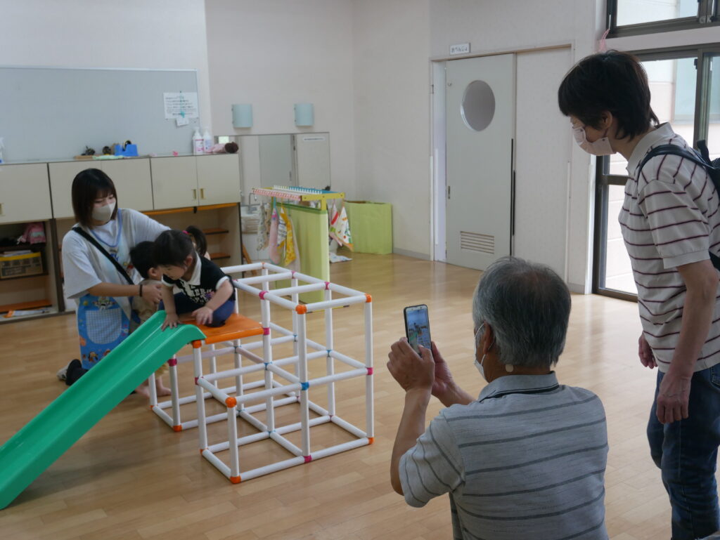 今年度はあいにくの天気でお足元が悪い中でしたが、たくさんの方にご参加いただきました。子どもたちが「ぼくのおばあちゃんきた!」「こっちのおへやだよ!」と大きな声で誘う姿をみて、この日をとても楽しみにしていたことが伝わってきました。保育園で過ごすお孫さんの姿を見て成長を感じながら「来年も待ち遠しいです」などとお言葉をいただき、とても嬉しかったです。本当にありがとうございました。
