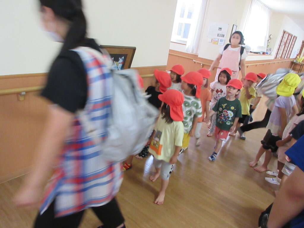 9月29日(月)に風水害(川の氾濫を想定して)の避難訓練があり、隣の愛宕の園に避難をしました。