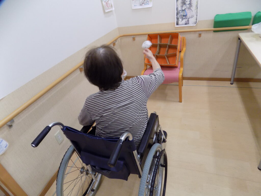 今日は的に向かってボールを投げるレクリエーションをしました。