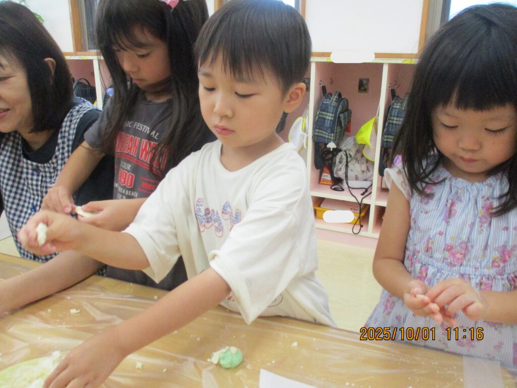 5歳児ゆり組🌼お月見団子作り🌜【ナカノスイミング保育園】