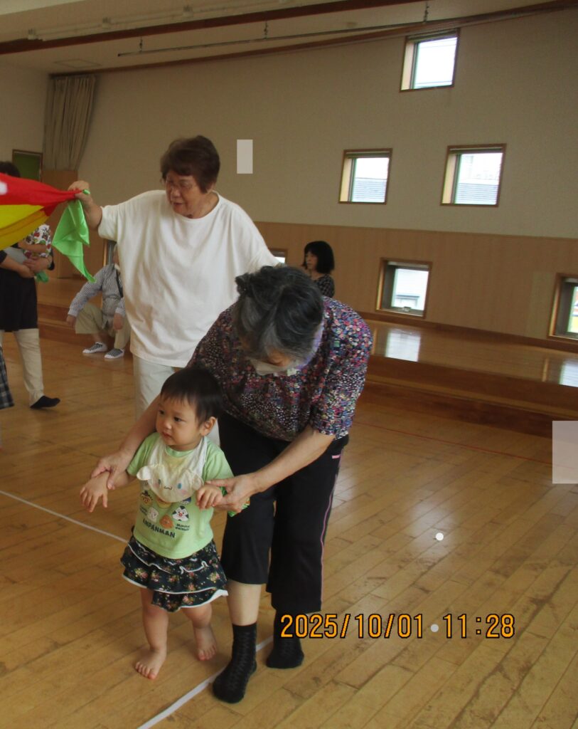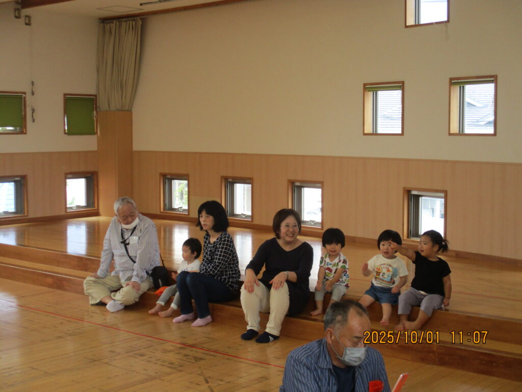 始めは、おじいちゃんおばあちゃんと保育園で会うことにドキドキしている子、嬉しくなり抱っこをしてもらったり一緒に遊んでもらう子など様々でしたが、一緒に遊ぶうちに緊張がほぐれて笑顔も増えていきました。