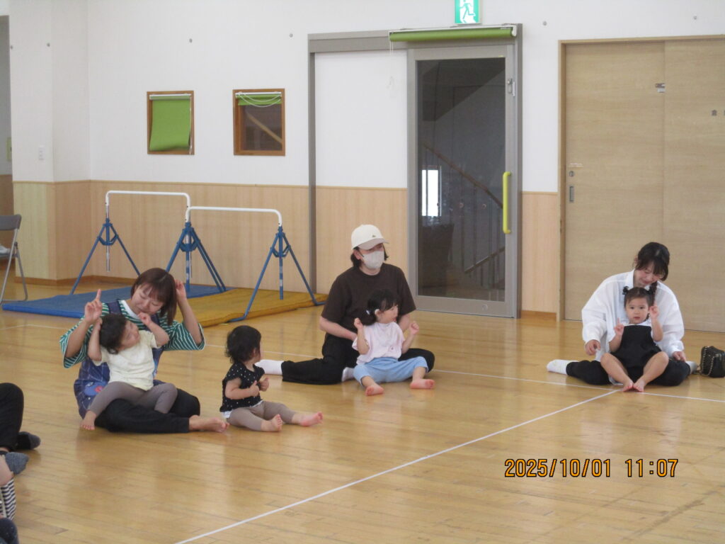「げんこつ山のたぬきさん」や「一本橋こちょこちょ」など手遊びやふれあい遊びもしました。