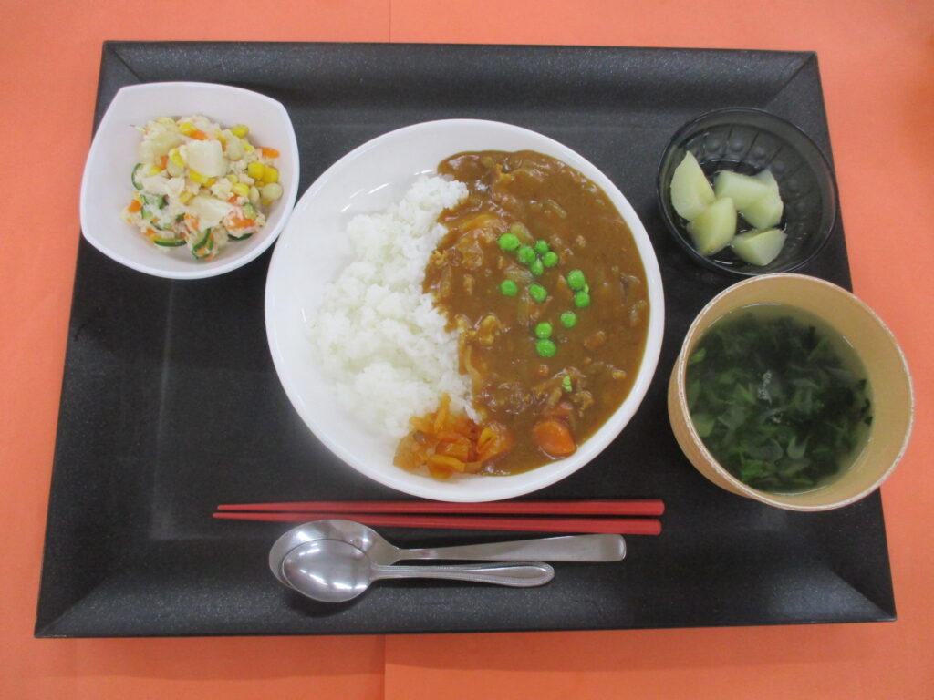 🍛カレーライス🍛 マリネサラダ 福神漬 果物🍍🍍🍍