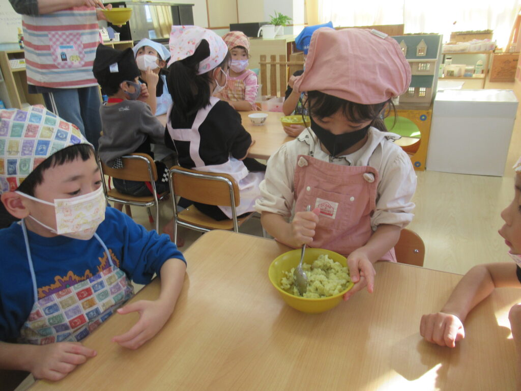 5歳児ゆり組🌼スイートポテト作り🍠【ナカノスイミング保育園】