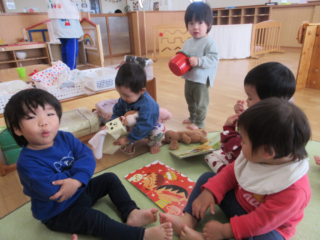 絵を見たり、めくったりするのが楽しいようです。絵本に出てくるセリフも絵本を読んでいるうちに覚えているお友だちもいましたよ♪