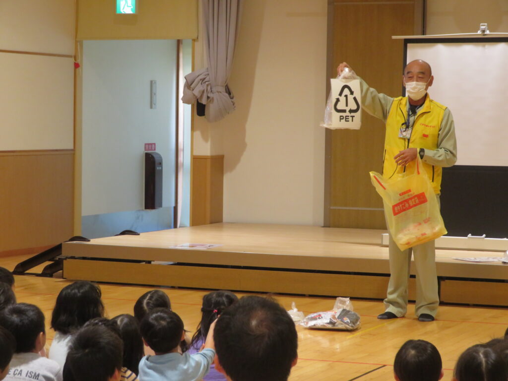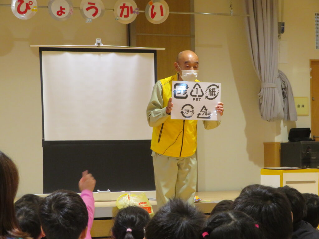 「みんなのお家からどんなゴミが出ているか分かるかな?」という質問に、「ペットボトル!」「バナナの皮!」「ティッシュ」など様々なワードが出てきました💡
