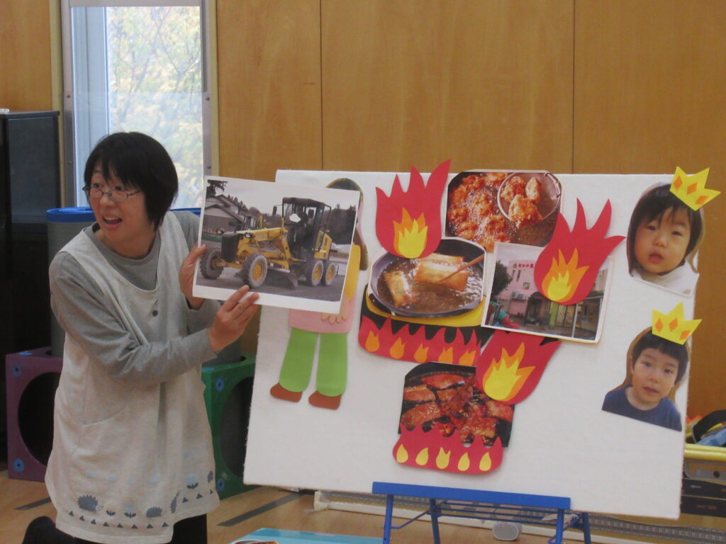 始めは、11月うまれさんのお友だちが大好きな、車とごちそうが登場するお話を見ました。