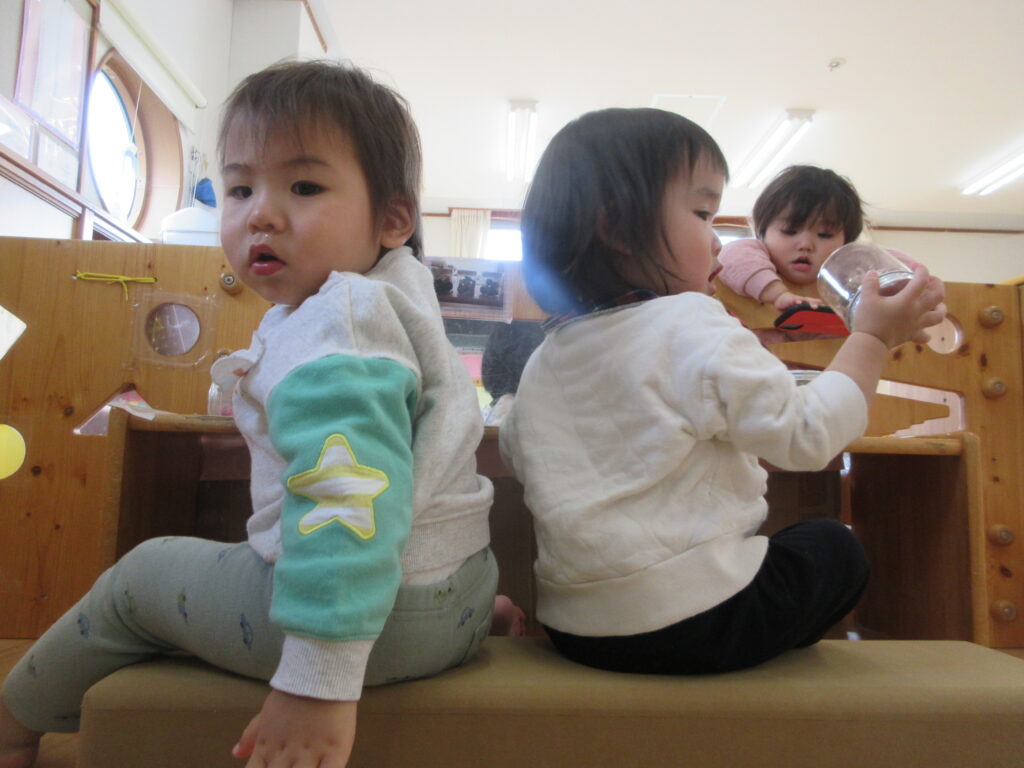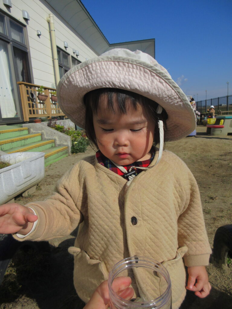 他にも容器を振って音を楽しんでいました。