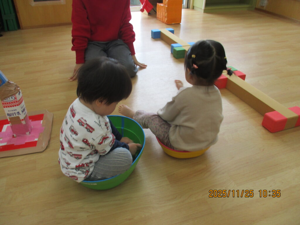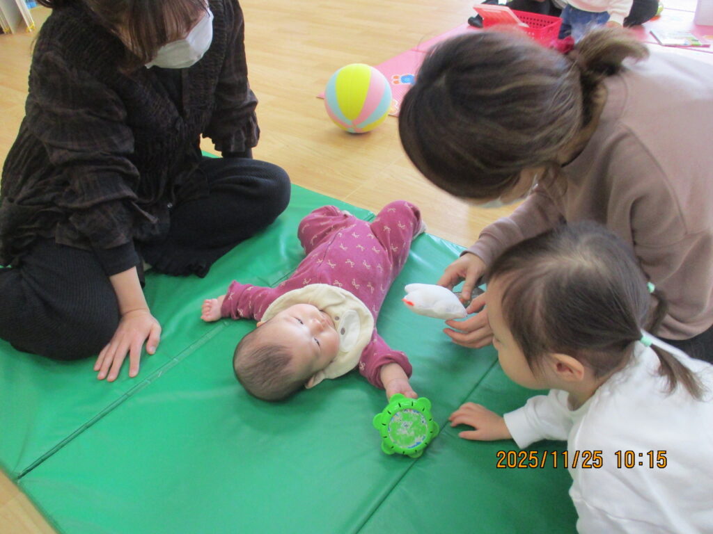 また、小さい赤ちゃんのお友達を見て、「かわいい~♡」と自ら近づいて行ったり、玩具を優しく「どうぞ☺」する姿も見られ、ほっこりしました♡