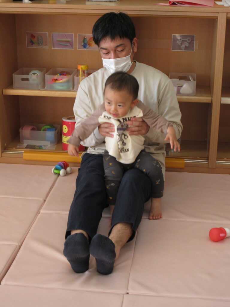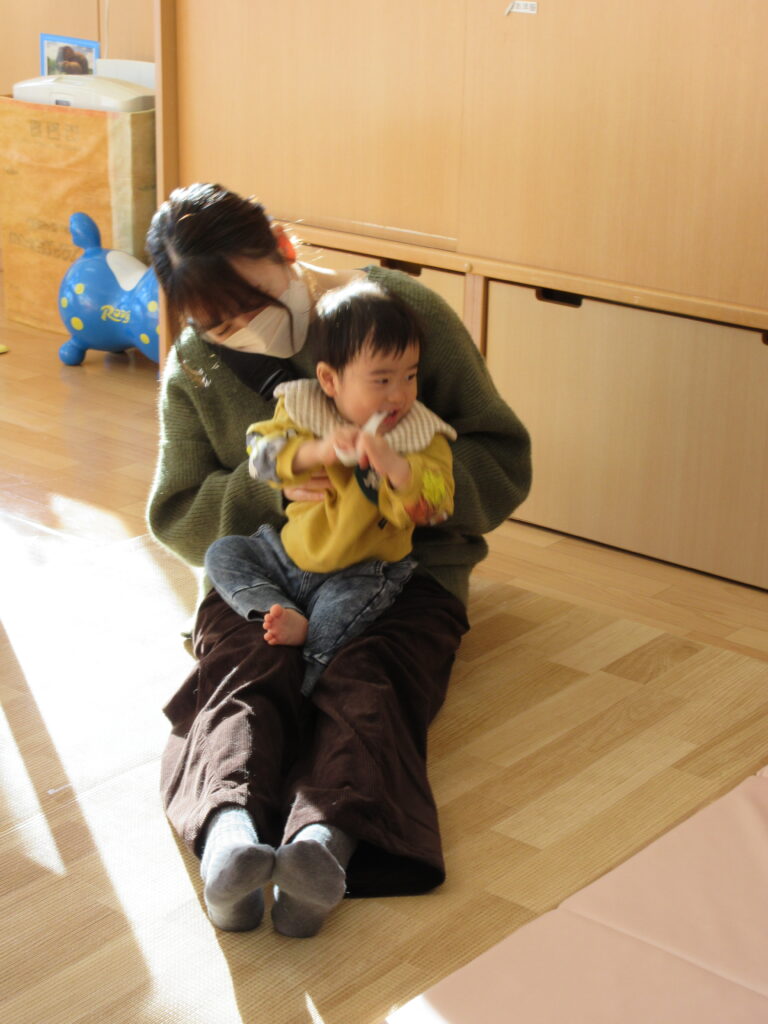 お家の方と一緒に親子触れ合い遊び(キュウリが出来た、一本橋こちょこちょ、バスに乗って)をしたり・・・💛