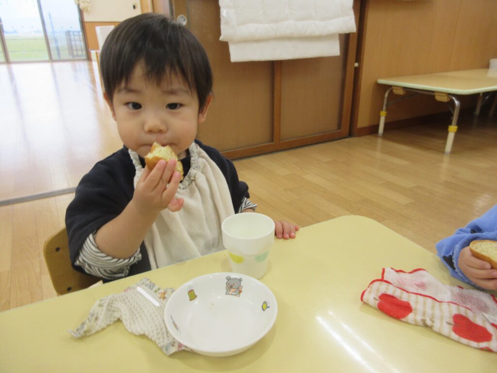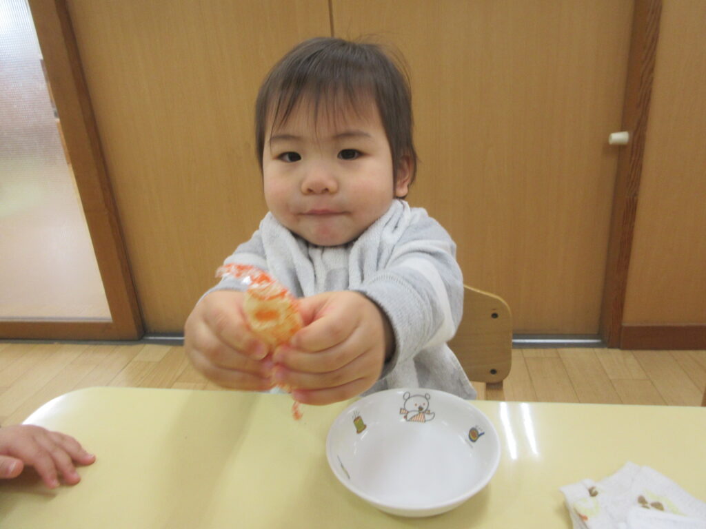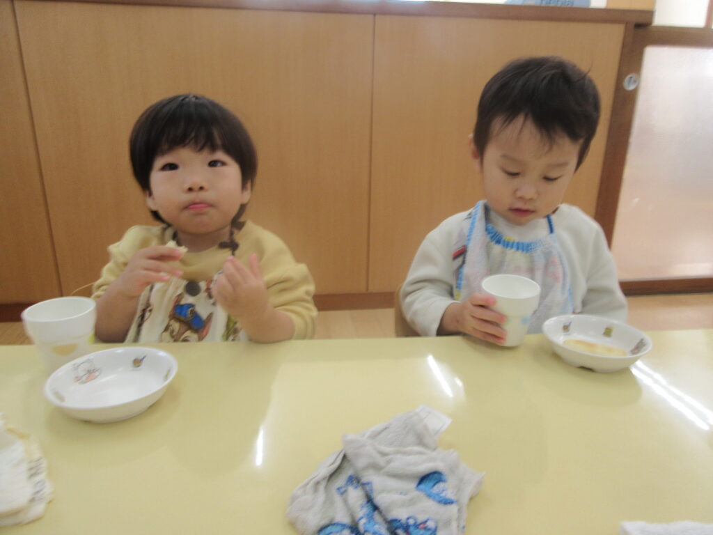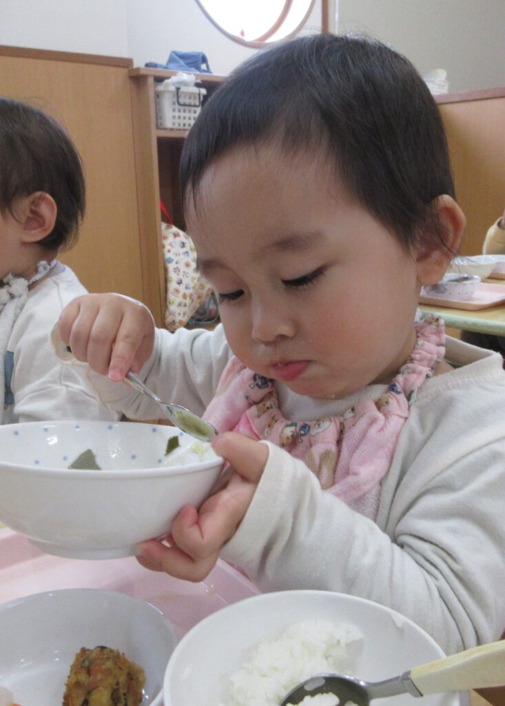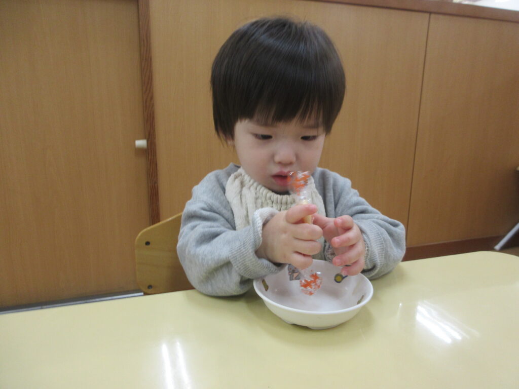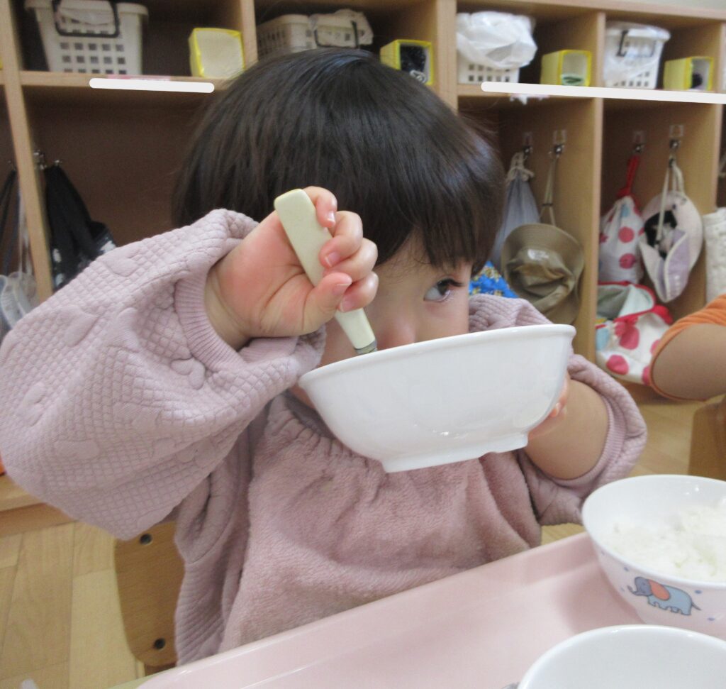 汁物はとても進みが良く、食べ終わるとお皿を持って先生に「ちょうだい」「おかわり」と言っていますよ♪