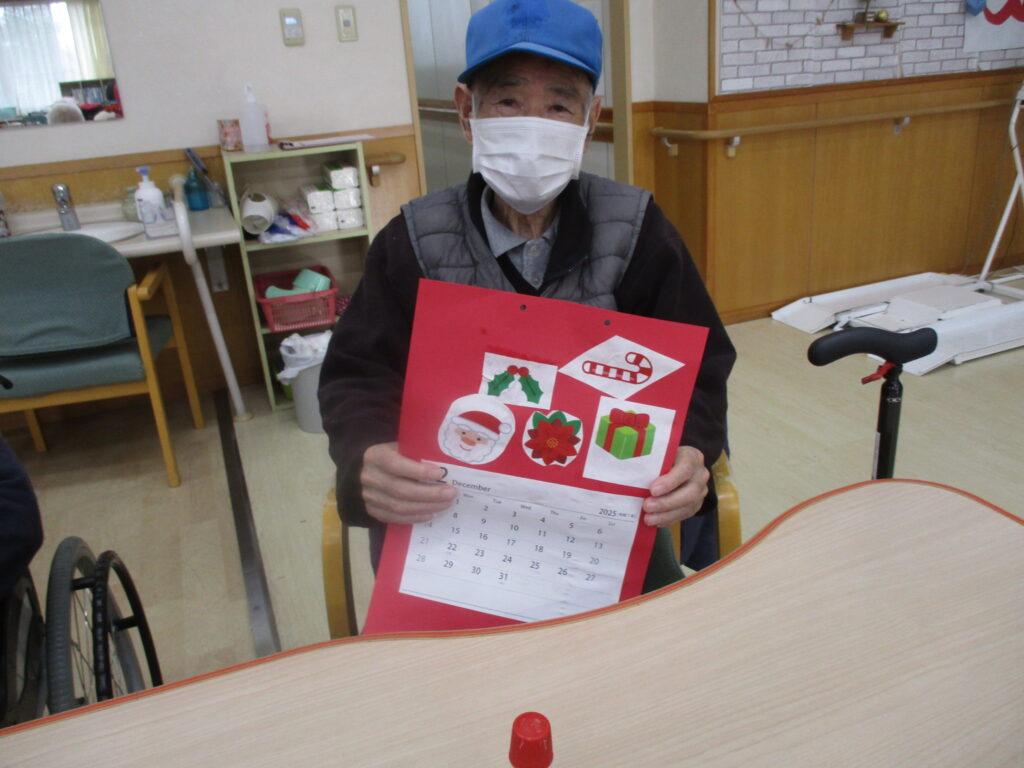 今週のデイYOUはカレンダー作りをしました。12月はクリスマス感たっぷりの感じにしました🎄🎄