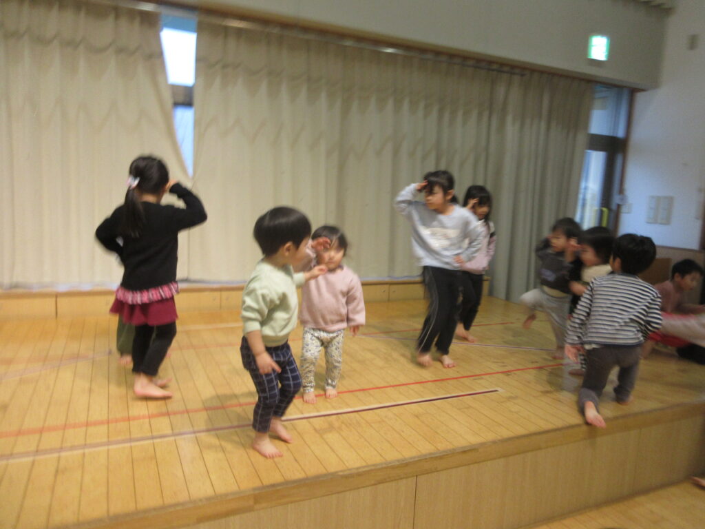 最近ホールへ行くとお兄さんお姉さんが発表会のダンスを踊っていて、その姿をよ~~~く見ている子どもたち👀