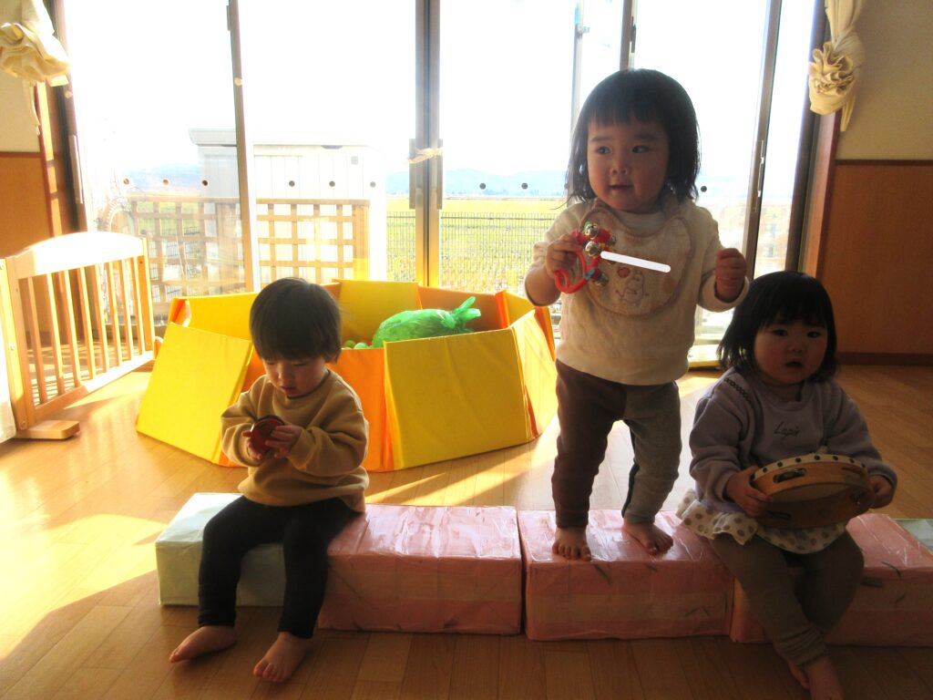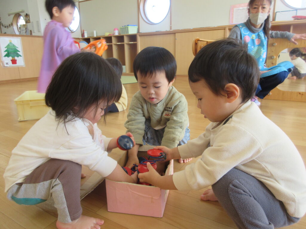 「あわてんぼうのサンタクロース」や「ジングルベル」などクリスマスソング🎄を流すと、音楽に合わせて自由に音を鳴らして楽しんでいましたよ♪