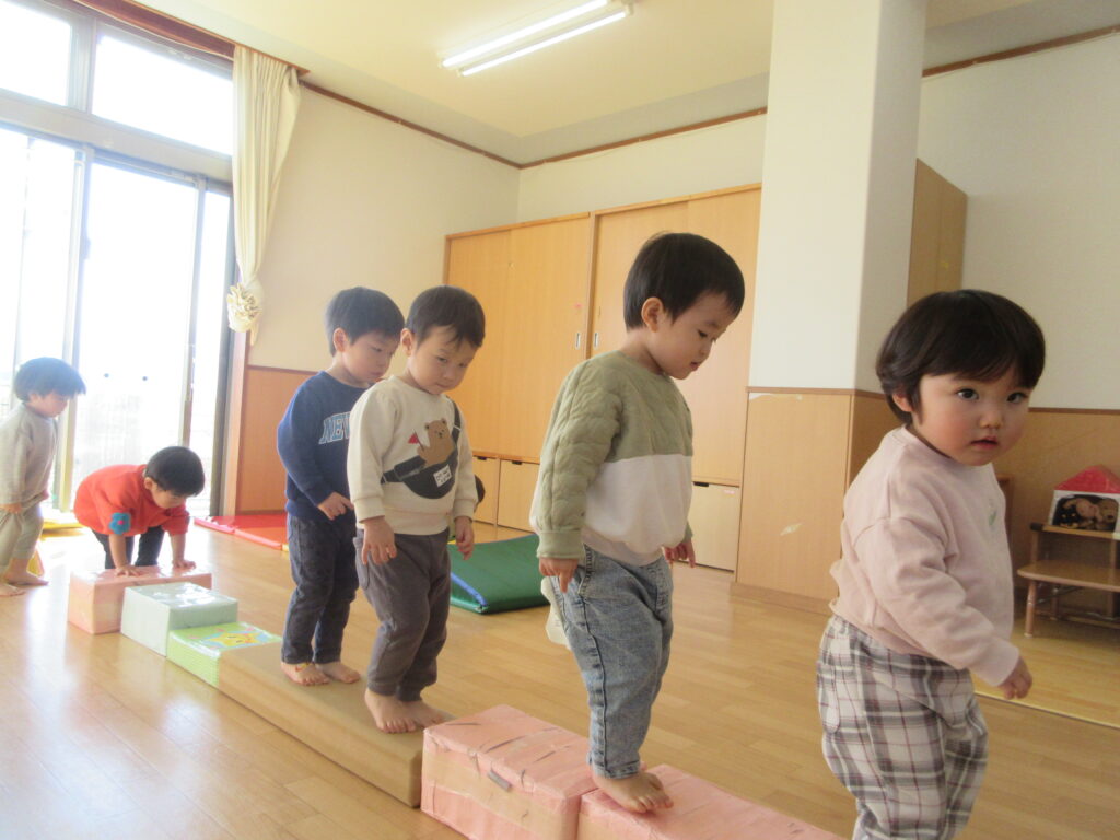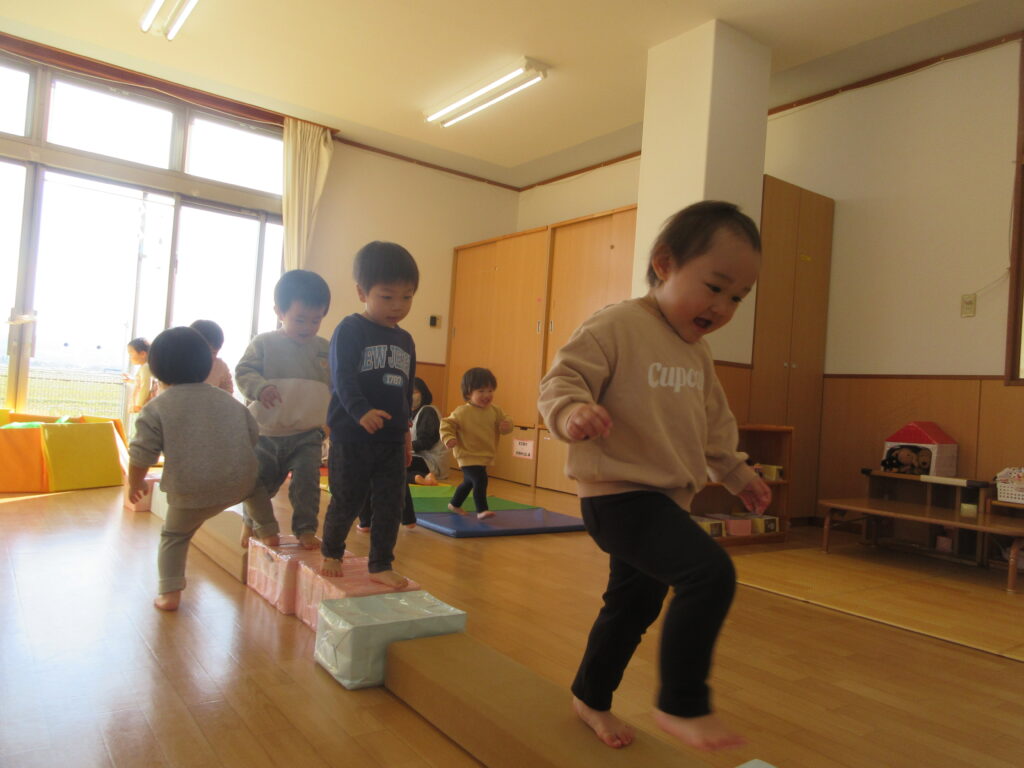 ステージの向きを変えて道を作ると、とーーーっても上手に歩いていてびっくり!そーっとそーっと慎重に歩いていました😊