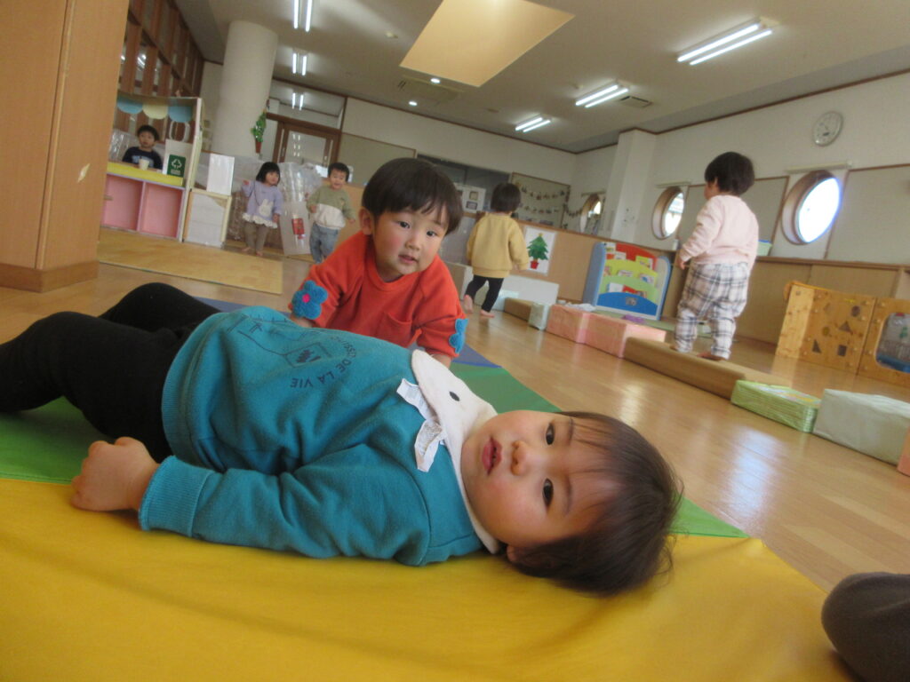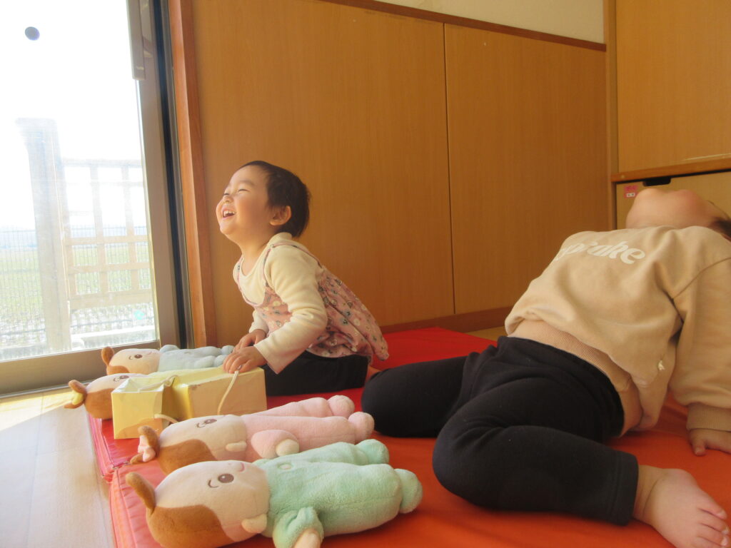 「赤ちゃんもごろんする!!」とお気に入りのお人形や動物を連れてきて楽しむお友だちも🥰