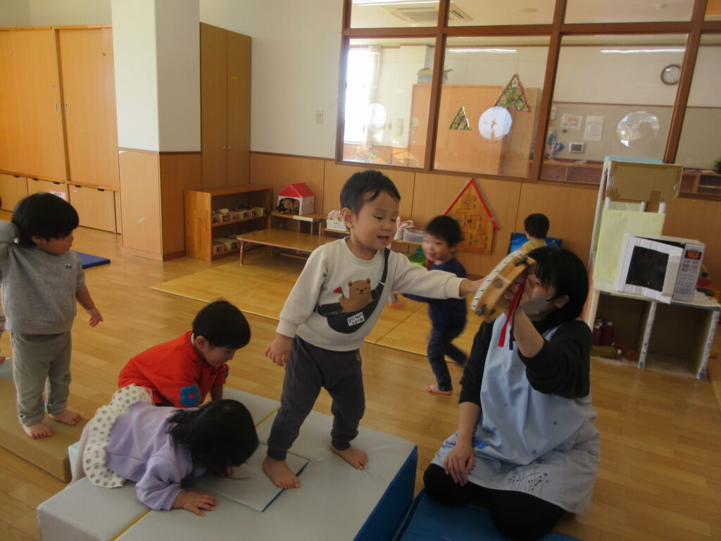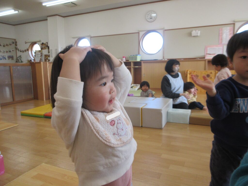 「あたまかたひざぽん」の手遊びも人気で、どんどんスピードがあがるのが面白いようで「もう一回!」と繰り返し楽しみました🌟