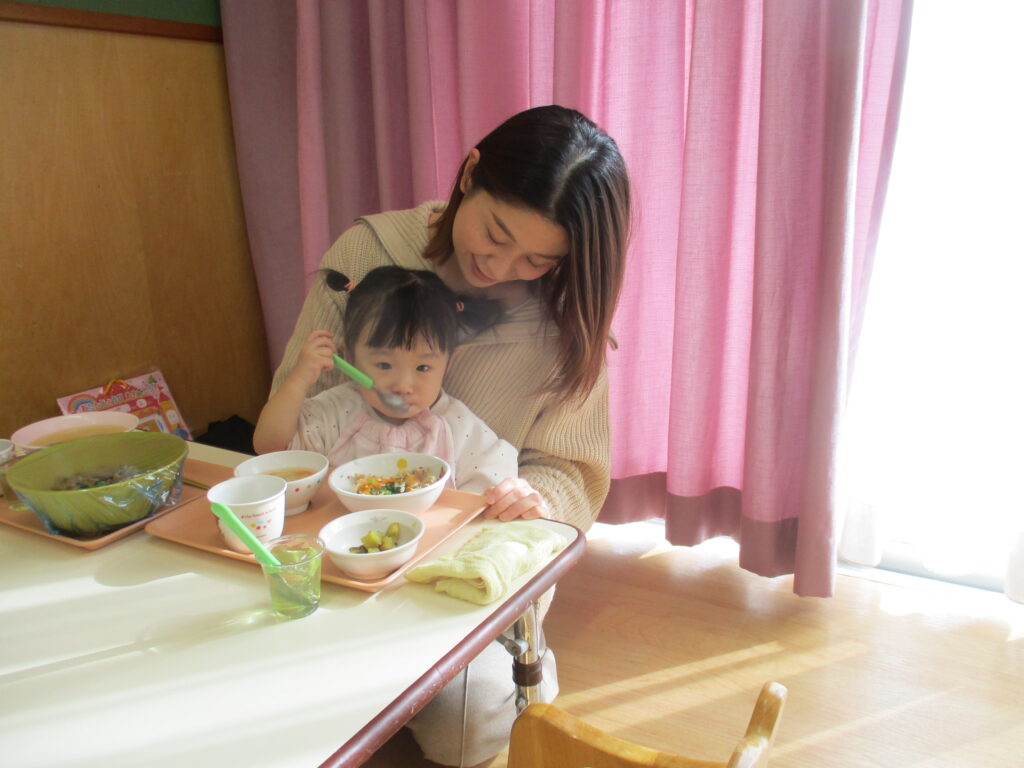 お給食もみんなでたくさん食べました。お誕生日のお友達は、ママやパパと一緒に過ごせてとっても嬉しそうでした!楽しい一年になりますように。