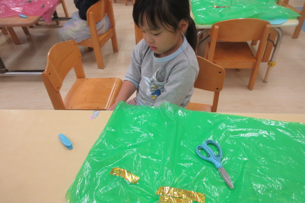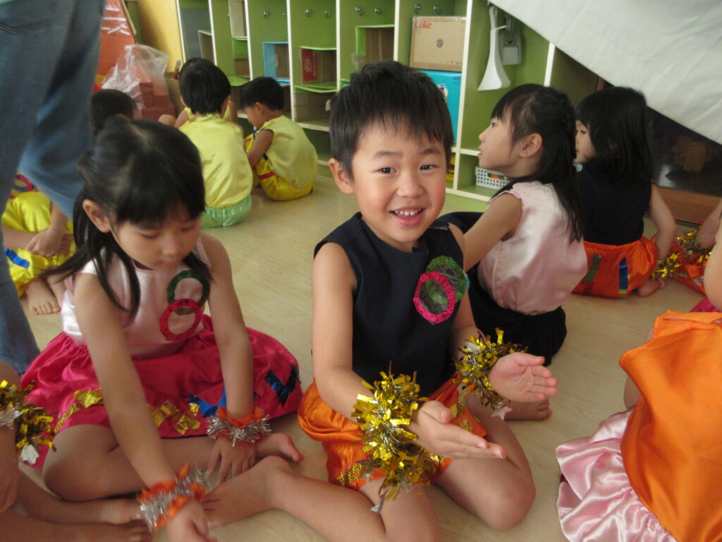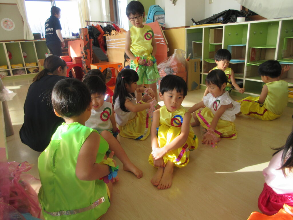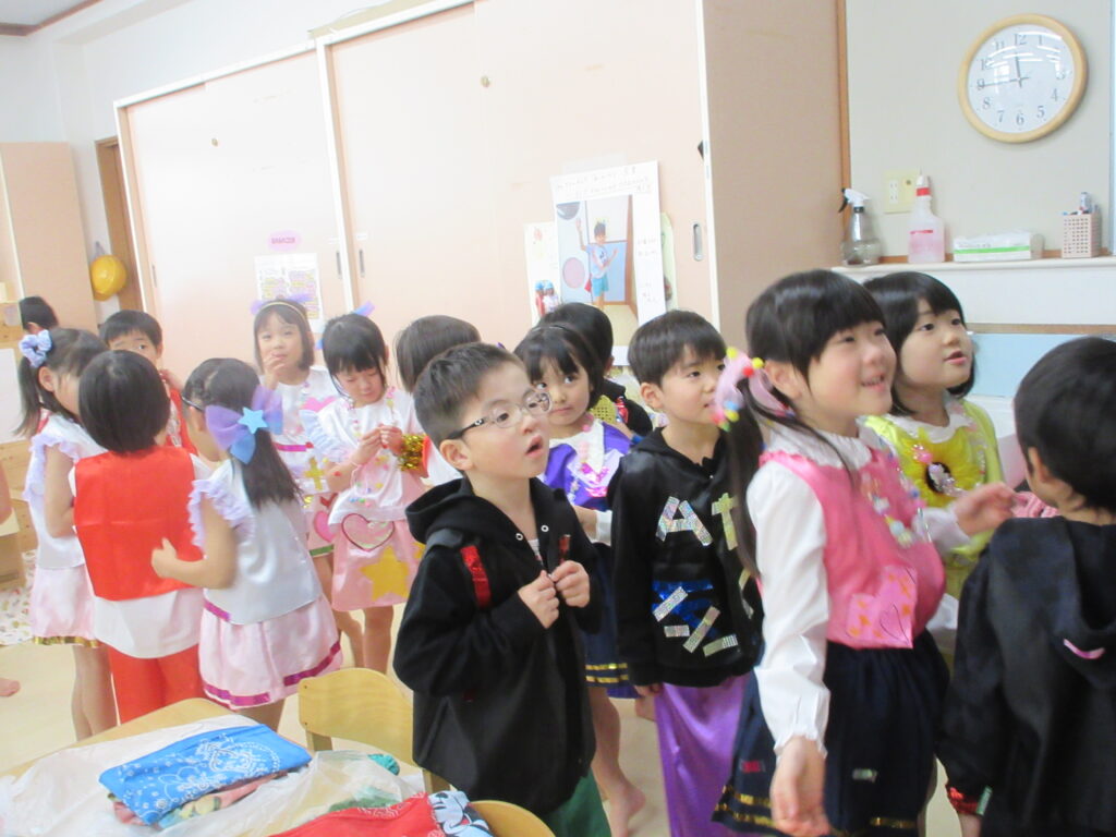 今年は子どもたちが着たい衣装を選び、デザインも自分たちで考えました♪今年は初めての取り組みでしたが、子どもたちも作っている中で「もっとこうしてみたい!」「ここにテープ貼ろうかな…」と衣装を作る段階からワクワクな子どもたちでした。