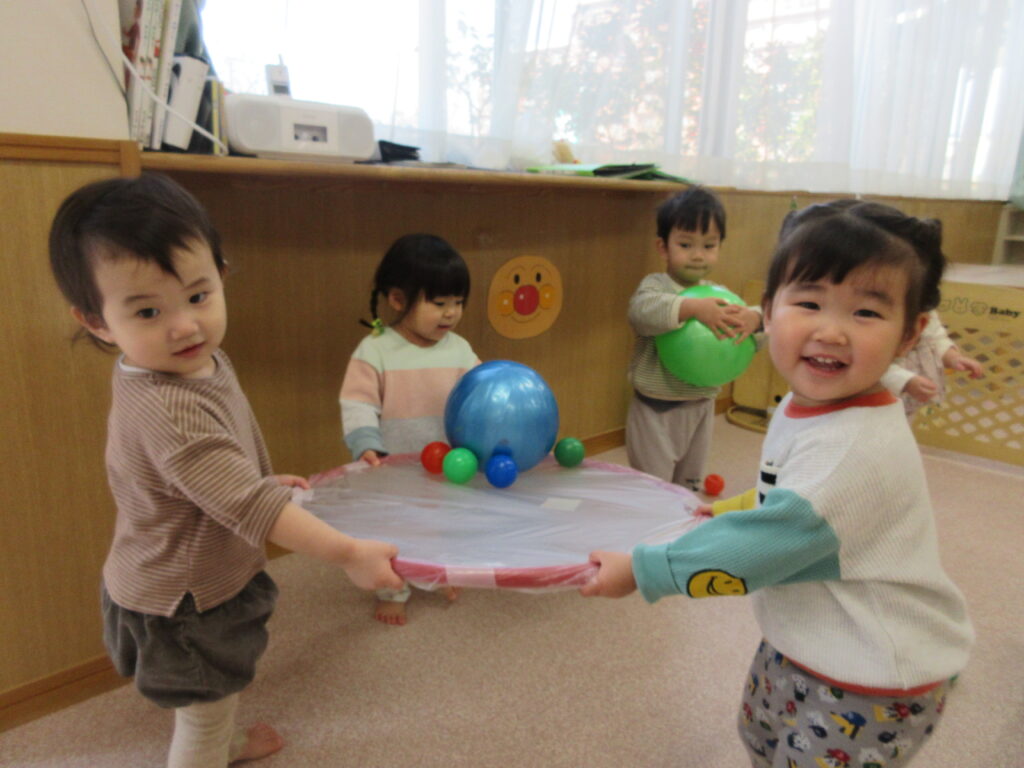 0歳児クラスのお友達も色々な遊びが出来るようになりました。