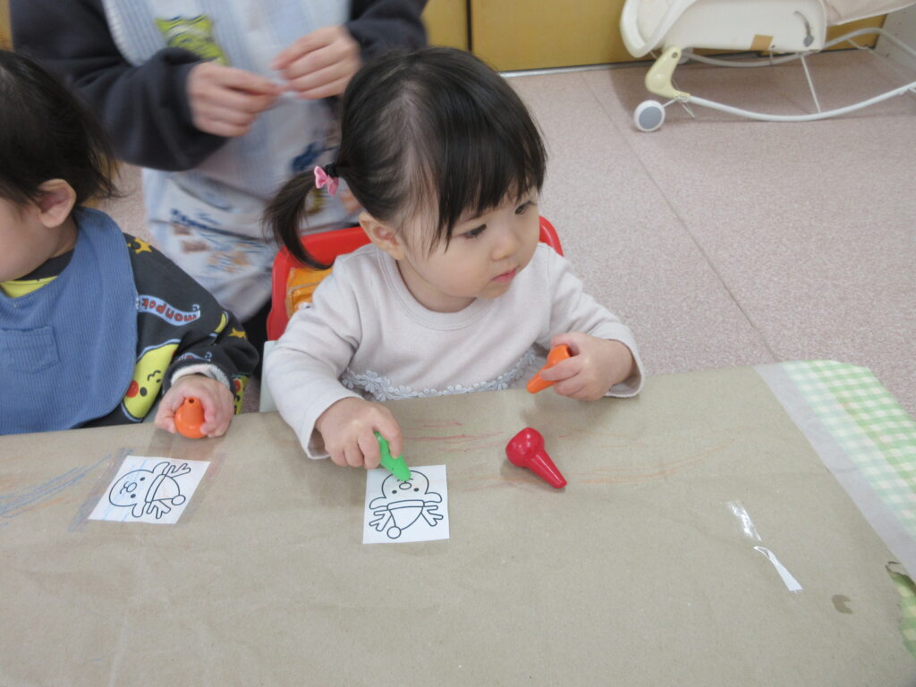 お絵描きでは、クレヨンを使って塗り絵に挑戦しました。クリスマスが近いのでトナカイの塗り絵を楽しみました。