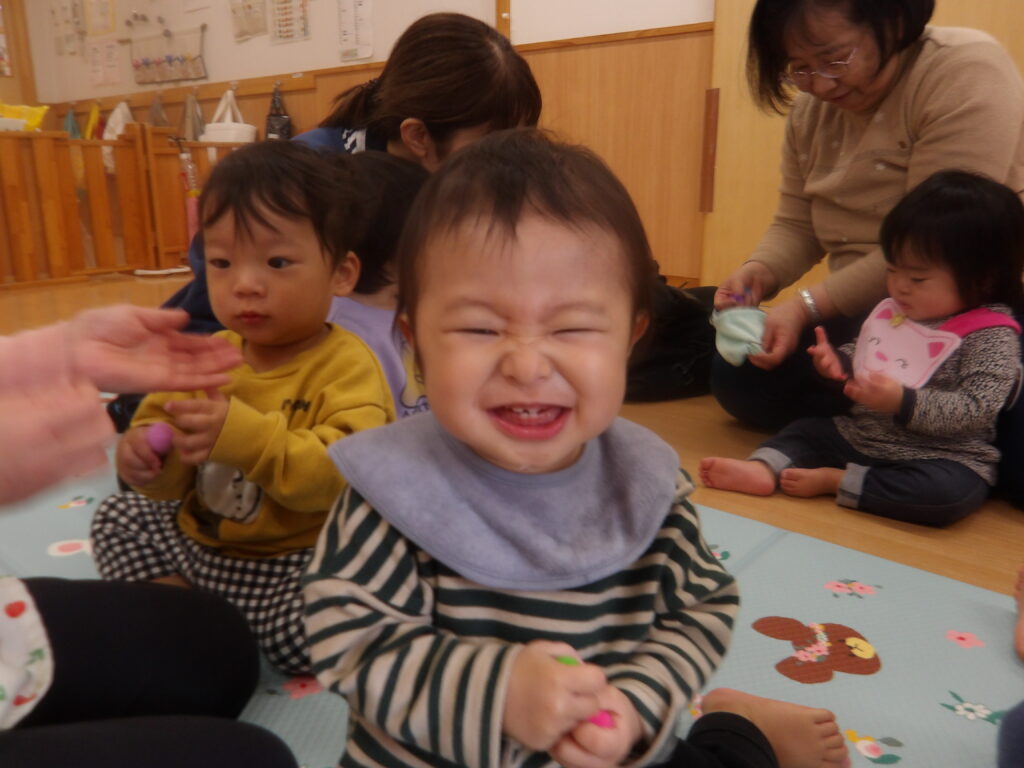 今年も楽しい事がたくさんありました。西間木先生の体操教室や小原先生のわらべうたあそびなどで色々教えて頂いた遊びをこれからもいっぱい楽しみながら、子ども達と元気に過ごしていきたいと思います。