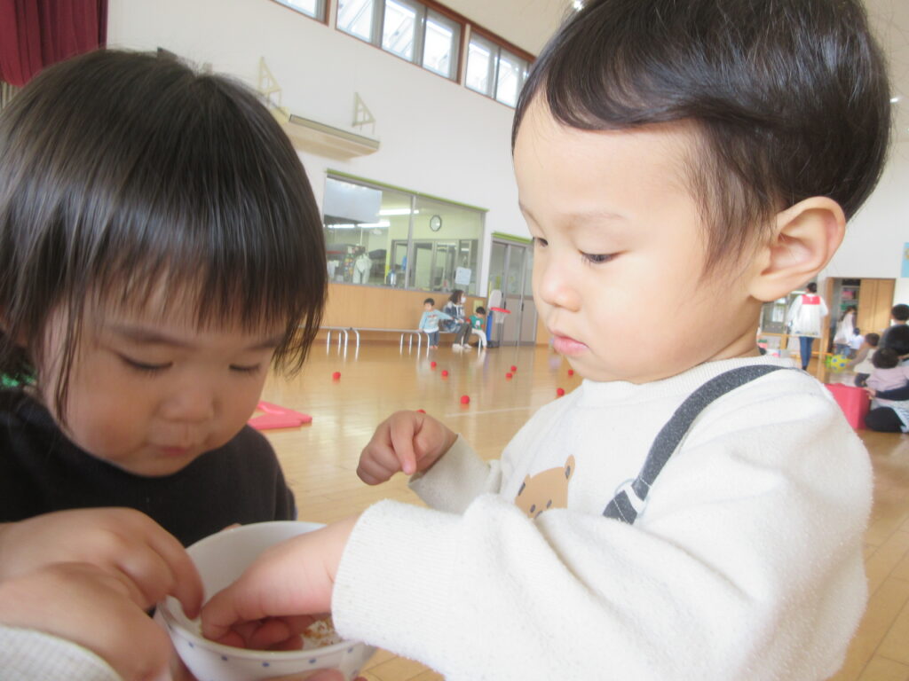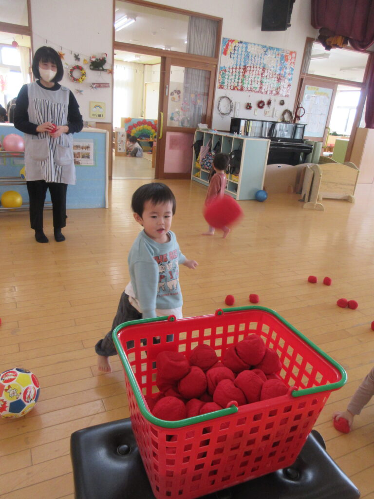 最近は玉入れも「楽しい~~~~~~!」つぼみぐみさんです。