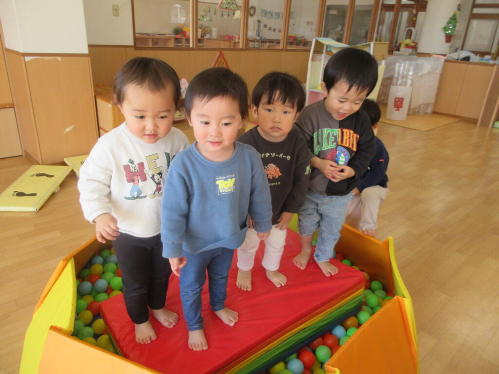 そして最近ボールプールの中にマットを置くとミニステージのようになりバランスをとりながら
