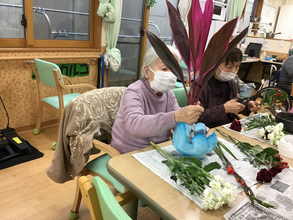未分類 勇樹会 日の出デイサービス 生け花教室【勇樹会日の出デイサービス】 掲載日2025.12.17 カテゴリー 今年最後の生け花教室!! 色とりどりのお花を 組み合わせて一人一人違う 味のある生け花になりました\(^o^)/