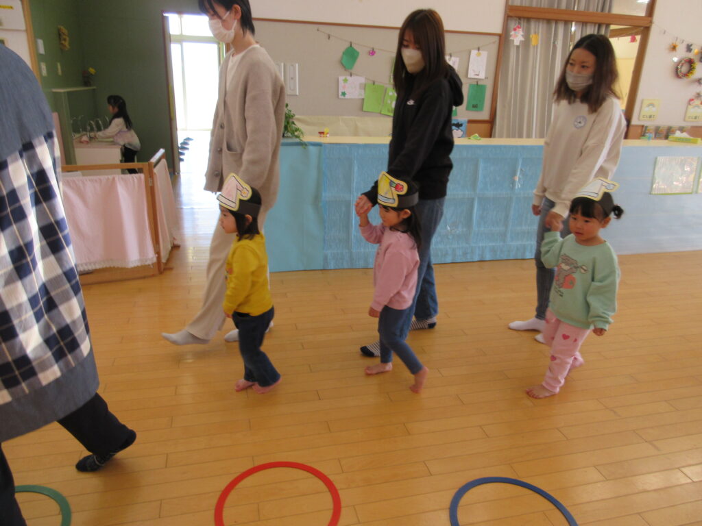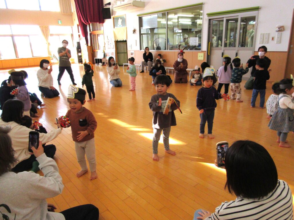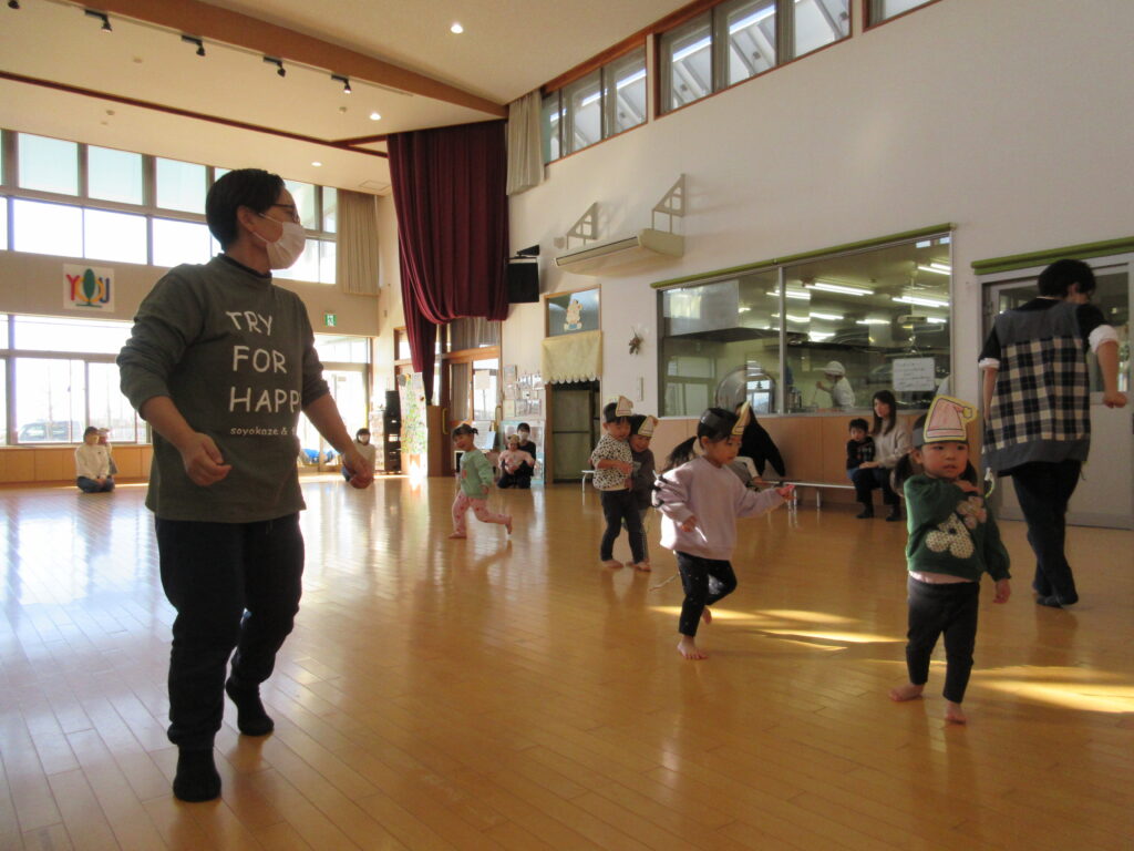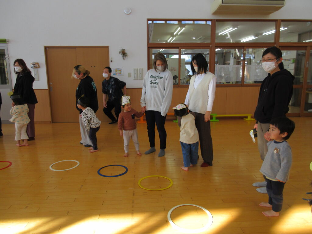いつもと違う雰囲気に少し緊張するお子さんもいましたが、普段行っている集団遊びの様子や、輪になってみる動き・集まる動きなどの集団ならではの動きを今日は垣間見れたかと思います。普段の集団遊びなどの様子は今後おたよりでも発信予定です。是非ご覧ください。