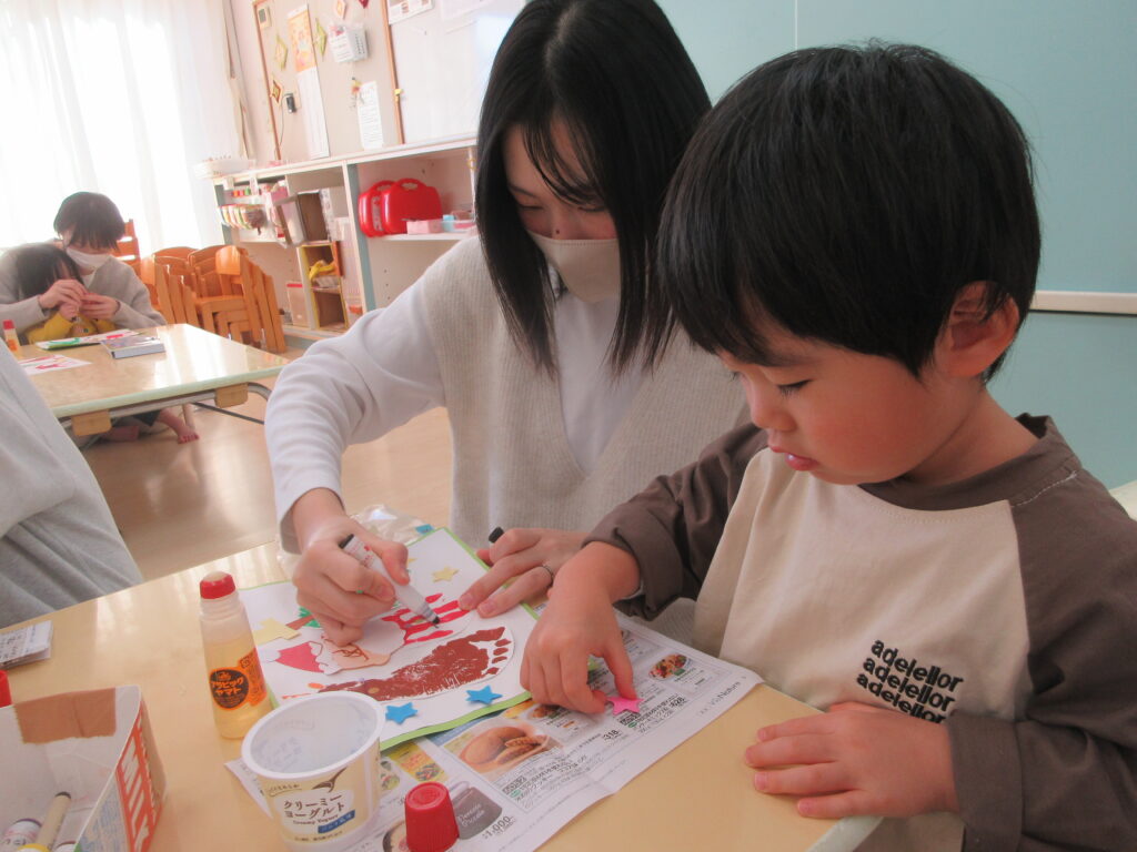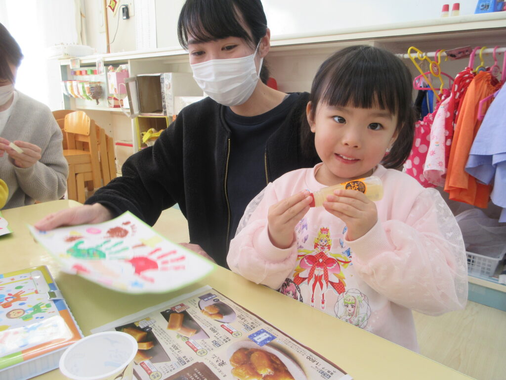 前日から「コレ、明日ママと作るの!?」「プレゼントあげるんだよね~♪」「まるまるゲームもしたい!!」と子どもたちはウキウキ気分でした。