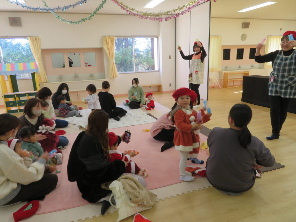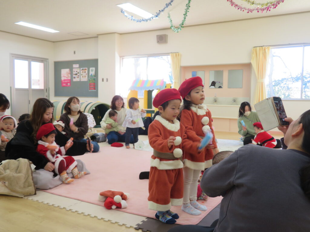 歌を歌ったり、演奏したりクリスマス音楽会をしたり、サンタさんの登場でとっても盛り上がり笑顔いっぱいの楽しい会になりました♪