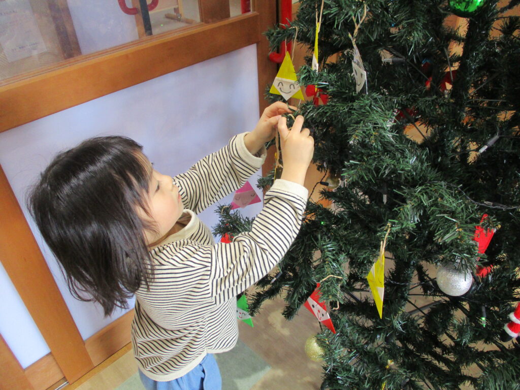 光を灯したツリーに、みんなで様々な飾りを付けたり…