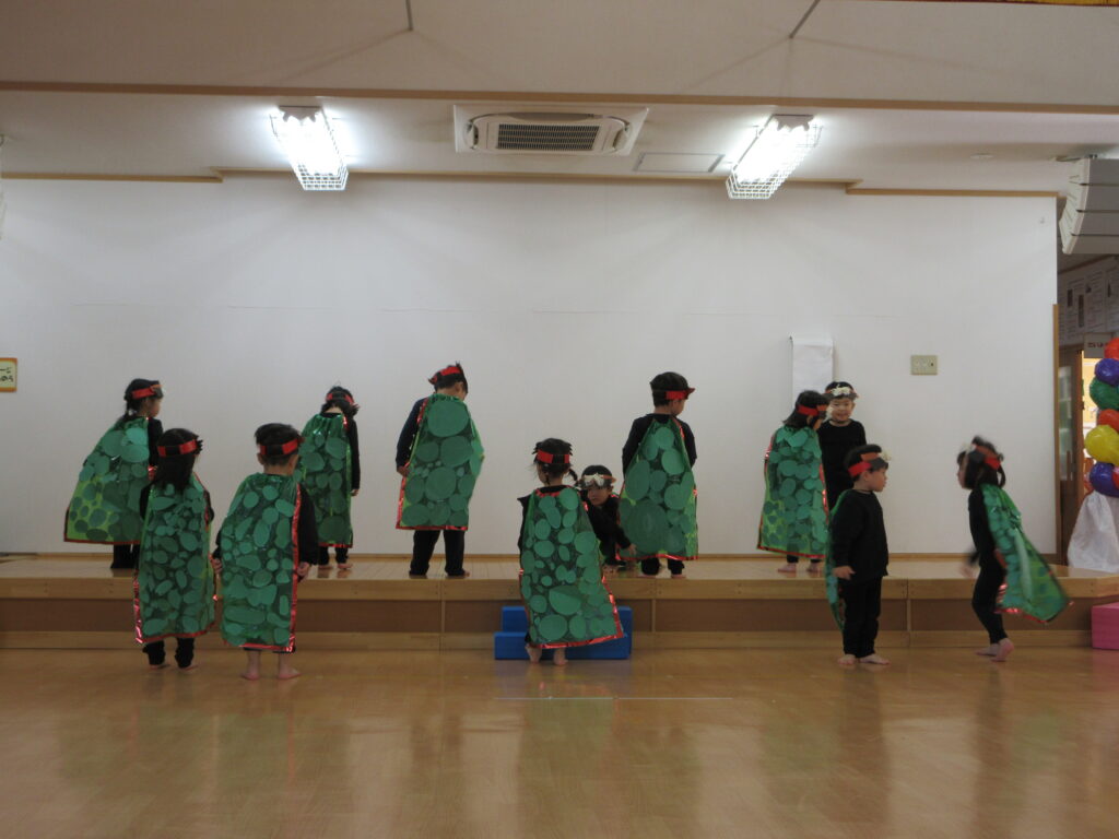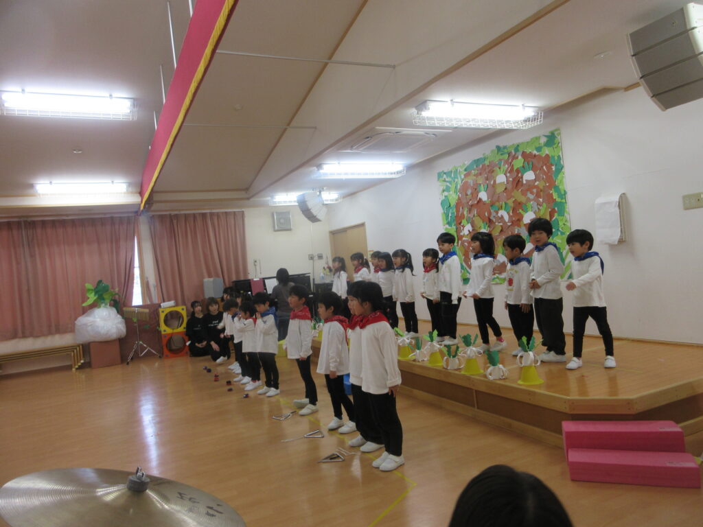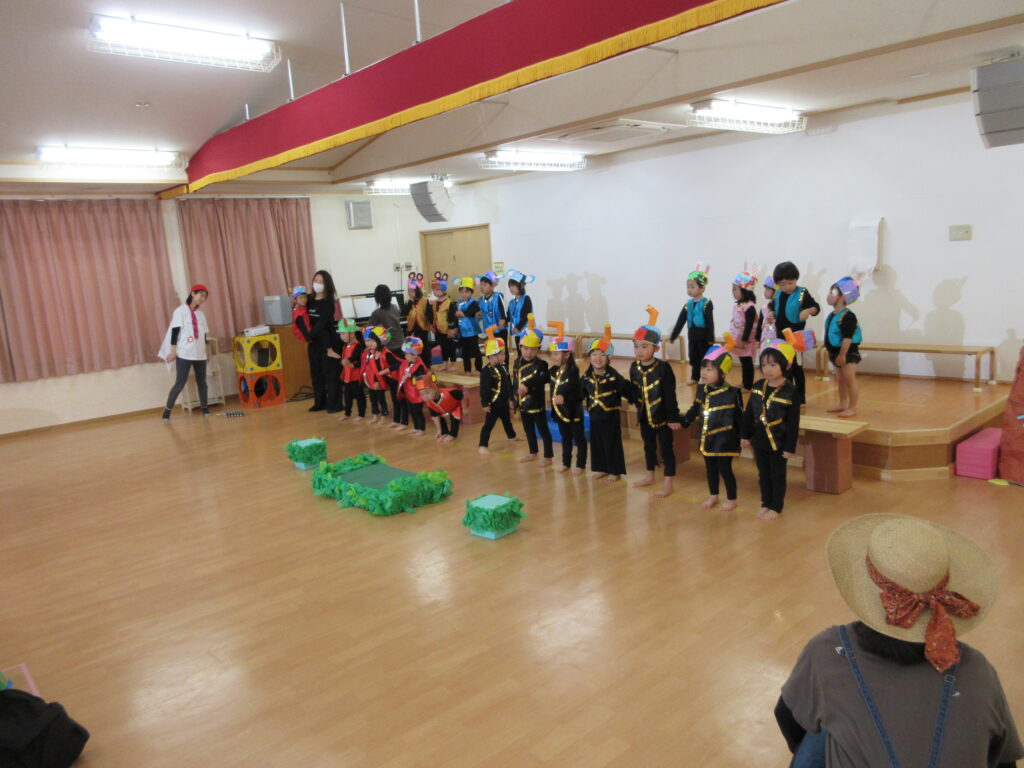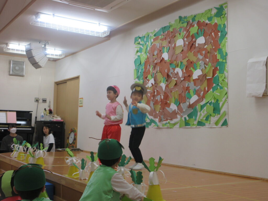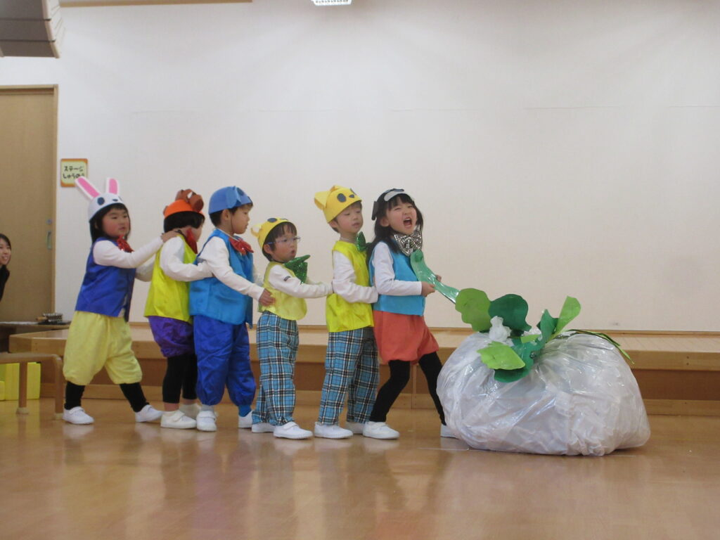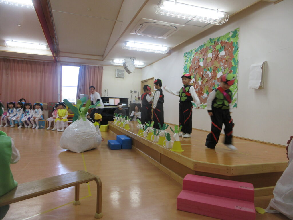 4歳児は、劇「おおきなかぶ〜そら組バージョン〜」を披露しました。